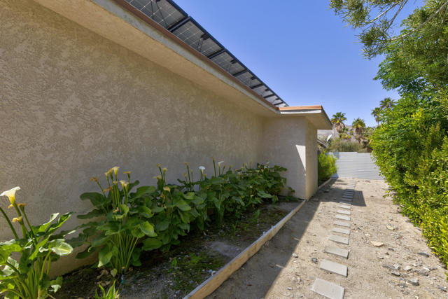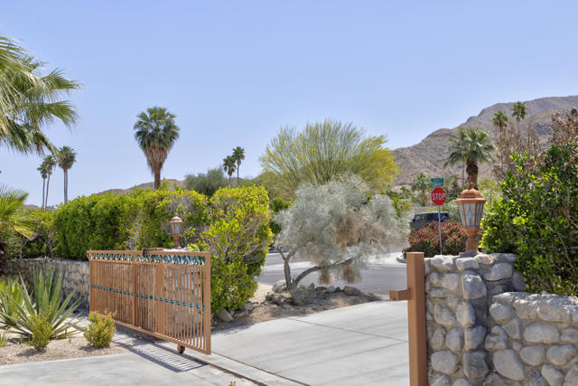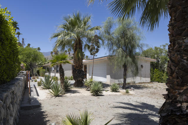 Mid-century style with class. Wonderfully upgraded. Set up as a main house and a guest house attached by a breezeway. Main house is 1 Bedroom, 1 Full Bath approximately 850 sq. ft. Guest house is also 1 bedroom, 1 Full Bath approximately 650 sq. ft. Guest House is a permitted ADU.Classic stone wall on South and East sides of nearly 1/4 acre lot. Hand painted wrought iron gates. Main house has a large great room with fireplace, 1 bedroom, 1 full bath and a galley kitchen. Guest house has a living room, bedroom, large bathroom with a shower over a Roman tub and dual vanity, a small galley kitchen, and a large walk in closet. Guest House is a permitted ADU.Bathrooms and kitchens of both units have beautiful granite counter tops, custom cherry wood cabinets and white subway tile walls. This charming home has 1' x 2' rectangular Italian porcelain tile. Neutral carpet in bedrooms. Recently painted plaster walls. Ceiling fans in all rooms except kitchens and baths. Owned (Financed) SOLAR over the garage is barely visible. Foam roof insulates and helps keep the house cool! Double pane windows also help save money and keep the home cool. Each unit has its own stackable washer and dryer. All appliances included. 2 hot water heaters, 2 ranges, 2 dishwashers, and 2 refrigerators. 1 year home warranty being offered. Great rental property or primary or secondary home. Live full-time in one unit and rent out the other unit. (Short term, seasonally or long term). Yes, short term rentals are allowed as long as you live in one of the units fulltime. Check with the city to confirm.Recently re-landscaped. Very large side yard is the perfect place to add your own pool and spa. Wonderful mountain and some city light views. Attached spacious 2 car garage with shelves for storage. Separate storage room attached to the garage.The Cathedral City Cove is a highly desirable friendly and diverse neighborhood. Most homeowners know their neighbors. It's centrally located near downtown Cathedral City with its theaters, restaurants and the Agua Caliente Casino. 15 minutes from downtown Palm Springs as well as El Paseo.Sewers were installed and the streets were repaved during 2007-2008. 30 year sewer assessment ends in 2035. The assessment for this property is approximately $1,588 per year. Paid with your property taxes. You'll be proud to call this house home!