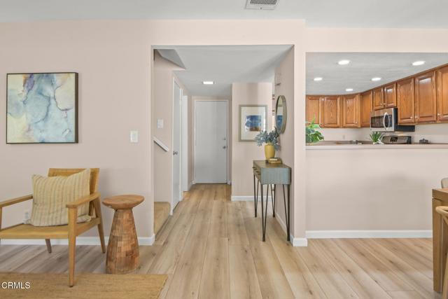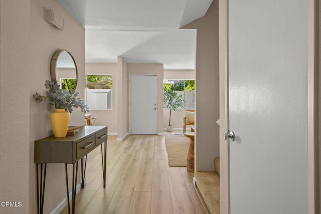 Welcome to this inviting two-story townhome in the beautifully maintained and gated Oakridge Estate Community. The main level of the townhouse is accessed through a spacious private enclosed patio with stunning mountain views. The main level of the home features newer elegant flooring and a bright open-concept floor plan. The living room is spacious, and the good-sized dining area opens to the kitchen. The kitchen features abundant storage, recessed lighting and a convenient breakfast bar, while multiple closets provide even more storage. There is access directly into to the main level of the townhouse from the garage, which offers additional convenience. A powder room completes the first level of the home. Upstairs are three spacious bedrooms, including a large primary suite with a dressing area and an updated bathroom. Two additional bedrooms and an updated full bath offer comfort and flexibility for family, guests or a home office. The attached two-car garage includes washer/dryer hookups and additional storage. With close proximity to Royal Oaks hiking trails, Old Town Monrovia, a public golf course and a myriad of shops and restaurants, this townhome is the perfect blend of comfort, convenience and style. Welcome home!