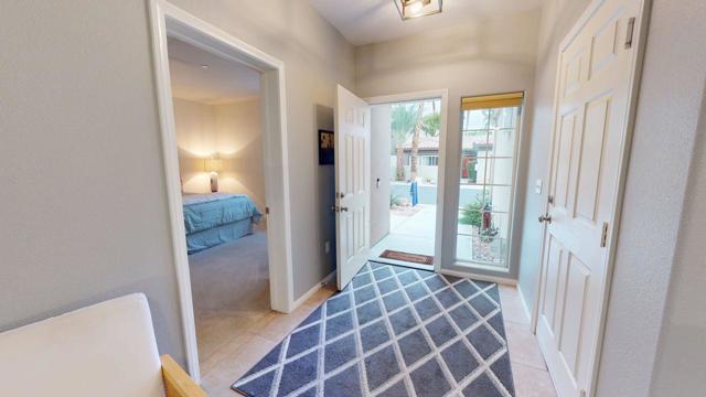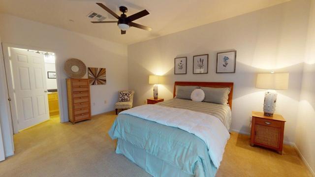 This Beautifully maintained single-story end-unit condominium with 2 Bedrooms and 2 Bathrooms features direct access to its own private 2-car attached Garage. The warm, sophisticated interior features an open-concept Great Room, Dining Area and Kitchen with no partition walls. The Custom Window Coverings with Up-Down Shades provide abundant natural light while maintaining privacy. The Spacious Kitchen, with Granite Countertops and a large Breakfast Bar are adjacent to the Dining Area, which is great for entertaining. The South-facing Patio with mountain glimpses and a scenic desert walkway leading to the community's large pool and spa are a plus. The Primary Suite with Desert Landscaping views similar to those from the Patio, includes an ensuite bathroom with access to the spacious Primary Bedroom Closet. The Second Bedroom Suite features direct access to the Guest/Second Bath and its own private entrance which is ideal for guests. The large Laundry Room with side-by-side Washer and Dryer includes ample storage space as well. And again, the attached 2-Car Garage is ideal. This lovely Simplex Condominium Residence, with no one living above, is located adjacent to the Cimarron Country Club/Golf Course that features two championship courses, a Pro Shop, Dining with Breakfast and Lunch options plus its 'Happy Hour' from 3pm to 6pm daily. Lantana at Cimarron is located at the end of 30th Avenue, west of Landau Road in Cathedral City, CA. It shares the same gated entry as the Worldmark Time-Share Residences. For the 3D Tour, please contact the listing broker.