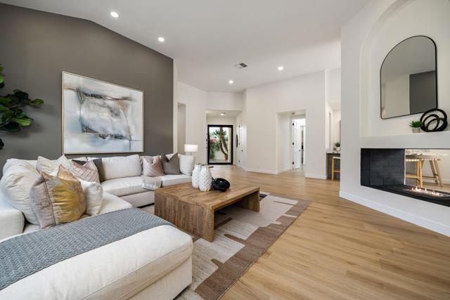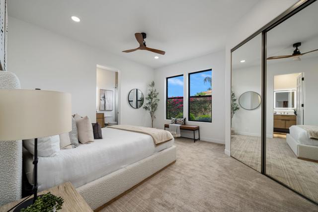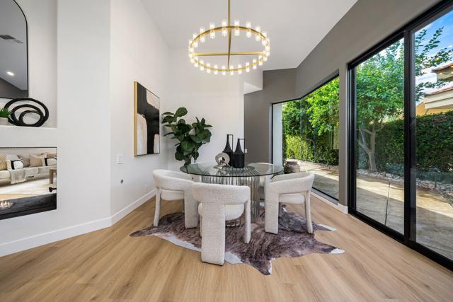 Experience breathtaking SOUTH FACING views from this stunning, beautiful remodeled residence designed to captivate from the moment you arrive. Enter through the welcoming courtyard and step inside the impressive glass pivot door, where expansive views, contemporary design, a soothing color palette and thoughtful high-end updates unfold throughout the home. The bright, light home is enhanced by the walls of windows and the amazing VIEWS! This private pool retreat offers 2,871 sq. ft. of sophisticated living space, featuring three en-suite bedrooms, an elegant powder room, and an exceptionally spacious primary suite. The open-concept design flows seamlessly from the inviting family room to the refined living area, highlighted by a striking see-through fireplace, and leads into the dining space. The stylish bar serves as a natural gathering hub. The showpiece kitchen complete with a generous island and top-tier finishes is perfectly designed for unforgettable entertaining, all framed by captivating lake and mountain views.Outside, the SOUTH FACING pool enjoys abundant sunlight with generous awnings providing comfortable shade. A tranquil side patio offers an intimate outdoor escape--perfect for relaxation or accommodating a pet. Discover a home where luxury, comfort, and design come together seamlessly. The newest Desert Home Investors project is waiting for you!