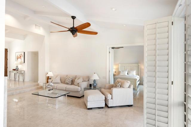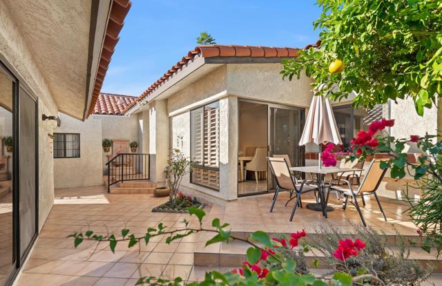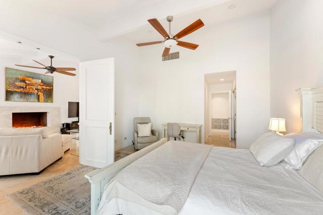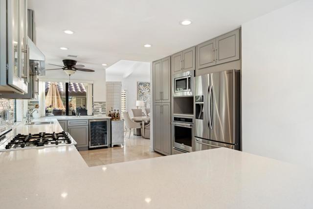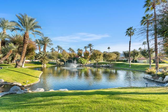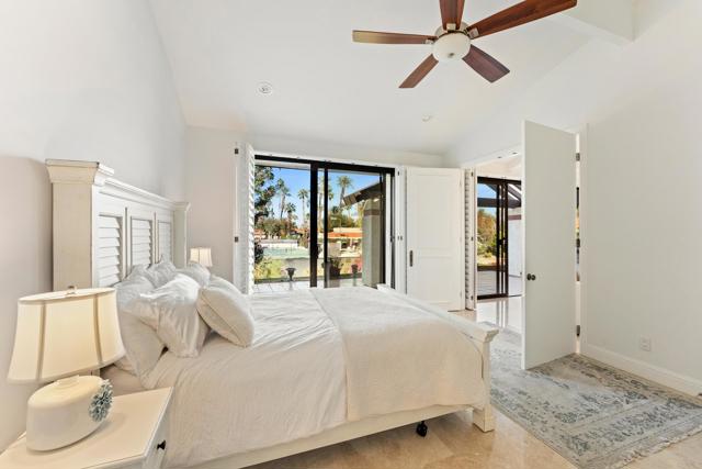 Nestled at the end of a quiet cul-de-sac within the prestigious gated Los Lagos community in Indian Wells, this FULLY remodeled residence showcases elevated craftsmanship, timeless luxury, and one of the most sought-after floor plans in the neighborhood. The home offers 4 bedrooms, including 3 bedrooms in the main residence and a DETACHED CASITA with a private entrance and its own ensuite bathroom--ideal for guests, multigenerational living, or a private home office. The redesigned primary suite is a standout feature, offering a custom walk-in closet, a rare feature in the community, and a beautifully fully remodeled ensuite bathroom with custom cabinetry and a built-in makeup vanity. Inside, high-end marble flooring flows throughout the entire home, including all bedrooms, creating a seamless and refined aesthetic. The living room is highlighted by a custom marble fireplace, soaring vaulted ceilings, and Lutron recessed dimmable lighting, creating a warm and inviting ambiance. The residence features three fully remodeled spa-style bathrooms, each with walk-in showers and built-in seating, along with a designer powder room. At the heart of the home is a chef's kitchen, completely remodeled with custom cabinetry, an expanded island, and premium stainless steel appliances, including a Bertazzoni gas range with matching hood, dual ovens, wine cooler, and two sinks, including a dedicated wet bar sink. Enjoy breathtaking, unobstructed views of the tranquil stream, pond, lush greenbelt, and long rows of palm trees--without facing another row of homes. Outdoor living is enhanced with two patios, including a private garden patio featuring citrus trees and desert landscaping, where the soothing sound of running water creates a peaceful and relaxing environment. Additional highlights include an attached two-car garage and access to resort-style community amenities such as four pools and spas, tennis courts, scenic waterways, and manicured greenbelts. Ideally located within walking distance to dining, shopping, and golf, and just minutes from El Paseo. Residents also enjoy exclusive city perks, including discounted golf, resort dining privileges, complimentary access to the Grand Hyatt fitness center, and additional Indian Wells resident benefits--making this an exceptional opportunity to own a turnkey luxury home in one of the desert's most desirable communities.