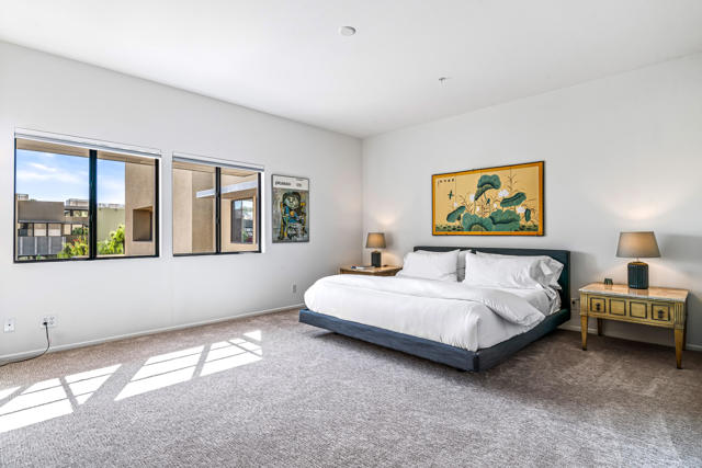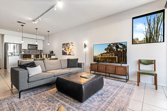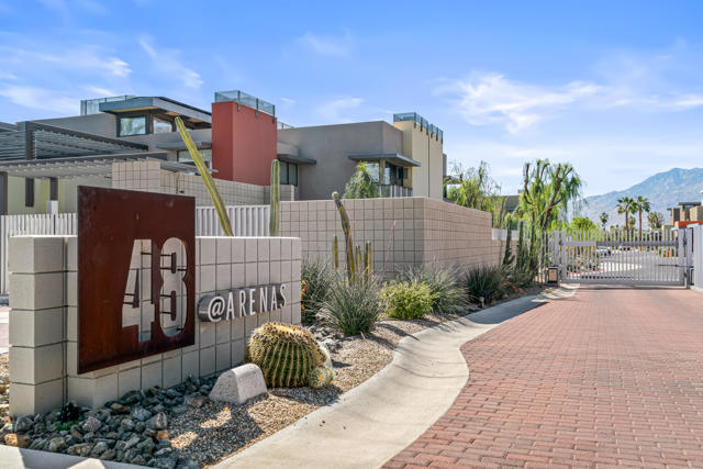 Introducing 48@Arenas - an enclave of contemporary townhouses nestled in the heart of Palm Springs, mere moments away from the vibrant Arenas District and an array of upscale dining and shopping destinations Downtown. Step into your own private oasis as you enter this sleek and modern home, where a welcoming patio sets the tone for the indoor-outdoor lifestyle that defines Palm Springs living. The main level boasts an open-concept design, seamlessly connecting the kitchen, living, and dining areas, all accentuated by expansive sliders that frame stunning mountain views and the serene Western-facing patio. A half bath and utility area round out the convenience of the main level. Upstairs, two serene ensuite bedrooms offer unparalleled privacy for both owners and guests. The primary, with its majestic mountain vistas and a charming Juliet balcony, serves as a luxurious retreat, while the cheerful morning light of the guest ensuite creates an equally inviting ambiance. Storage abounds throughout the home, complemented by a community bike room and convenient carport parking just steps away from the kitchen. Enjoy resort-style living with access to four pools and spas, all within a secure gated community where you own the land outright. Don't let this opportunity slip away!
