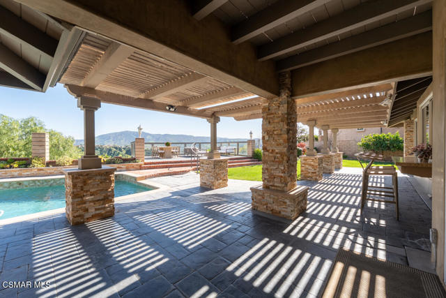 SPECTACULAR TURNKEY VIEW HOME in the desirable Hidden Hills Estates neighborhood has everything you could ask for in luxury living! The main floor includes a formal living room with a fireplace and built-in shelving and a dining room that leads to an upgraded kitchen with some newer appliances, a cozy breakfast bar and a desk area. The kitchen also opens to a family room and both overlook a huge play and entertaining area with its gorgeous PebbleTec pool, spa and waterfall and a deck that offers mountain and canyon views and is ideal for lounging, eating and entertaining. The kitchen pass through to the outside bar just adds to the feeling of an entertainer's dream. Back inside, the dramatic entry way takes you to a regal spiral staircase that leads to the second floor where you'll find a luxurious primary suite with multiple sitting areas, a fireplace, built-in bookshelves and a balcony that gives immediate access to those gorgeous views. The large primary bathroom features a stand alone bathtub, gorgeous shower and two sinks. A private wing with two bedrooms and a bathroom rounds out the top floor living quarters. There are also two full bedrooms and two full bathrooms downstairs as well as a laundry room. Mature apple, lemon and orange trees line the backyard. Additional features include luxury vinyl plank flooring throughout the bottom floor, new carpet and new interior paint and a three-car garage with its epoxy flooring. Excellent schools, convenient to shopping.