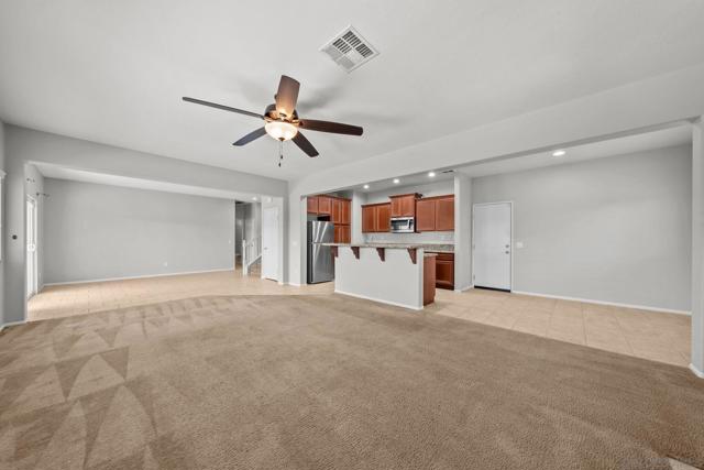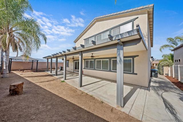 Beautiful 4-bedroom home tucked away on a private cul-de-sac with stunning mountain views — and neighbors on only one side for added privacy! Located in the desirable Canyon Village Estates community - Enjoy OWNED solar, a 3-car garage, low HOA dues — all in a prime location with easy freeway access and close to everything! The open-concept floor plan features high ceilings, abundant natural and recessed lighting, ceiling fans. The spacious dining room flows to kitchen, which is well-appointed with upgraded countertops, a large center island, built-in microwave, stainless steel sink, along with stainless steel appliances and breakfast bar seating. Upstairs offers three additional bedrooms and a convenient laundry room. The primary suite showcases beautiful views, a private retreat area, and a bathroom with dual sinks, a soaking tub, separate shower, and walk-in closet. Step outside through the sliding glass doors off the dining room to a backyard designed for effortless indoor/outdoor entertaining. Enjoy your covered patio complete with outdoor fans and lighting, plus a large gazebo — ideal for BBQs, get togethers, and admiring those mountain views. This is truly a move-in ready home you don't want to miss!
