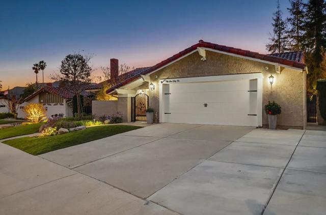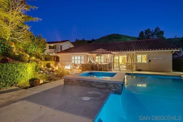 It's not just a home, it's luxury living in Fountainwood! Highly sought after 1 level 4 bedroom home! Attention to the most finite detail embodies this masterpiece home! Enter over paver tiles through the wrought iron gate! Don't miss the views of the surrounding hills! Open the double lead glass and wood front doors to the formal entry! Amazing flowing natural light greets you! To your left, the fabulous living room with recessed lighting, vaulted ceiling, and stack and stone cozy fireplace with custom mantel! Living room flows to dining area-ideal for family gatherings! Gourmet, completely remodeled, open-concept, custom kitchen! Granite breakfast bar and countertops, state-of-the-art Thermidor stainless appliances, crown molding, incredible lighting (recessed and pendant), wine frig, double sink overlooking backyard paradise, patio, and pool! Kitchen flows to spacious family room with more incredible flowing natural light! Large, private primary bedroom with slider out to patio-great indoor and outdoor flow! En-suite bath with marble tops, dual-head shower, walk-in closet with custom organizers! Great sized additional bedrooms! Stunning backyard with Pebble Tech sparkling pool (fully fenced) with elevated jacuzzi! Waterfall! Fire pit! A truly entertainer delight-outdoor kitchen with granite counters and umbrella to keep you cool while you BBQ! Mature sequoia, maple, and fruit trees! Details not to miss-finished garage, inside laundry room, security cameras, new roof (2025), ++! Make this your home before someone lese does! Welcome Home!