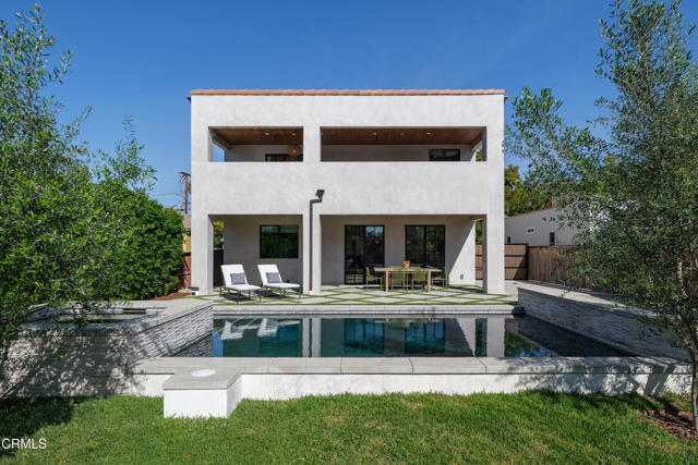 This custom-built modern Mediterranean home located on a tree-lined street in West Pasadena is just blocks from the central arroyo, Brookside Golf Course and the iconic Rose Bowl stadium. Built in 2023 by ARI Design+Build, this home is loaded with features and every detail of the construction exudes quality and creativity.The 2-story configuration is thoughtfully laid out with a main level that includes a huge living room open to the dining area and a fantastic chef's kitchen with a center island. There are 2 additional bedrooms flanking the entry hall and one full bath. Steel French doors open to a covered porch and a large grassy yard, complete with a salt water pool and spa. The upper level offers 3 additional bedrooms, with a dreamy primary suite that includes a private balcony, spa-like bathroom and walk-in closet. A hallway bath with double sinks services the other bedrooms, and a dedicated laundry room completes the upper level.The home has a state-of-the-art solar power system and is equipped with a 220V electric car charger. Beyond the gated driveway is a detached garage at the rear of the deep, flat lot. This fully landscaped luxury residence is among the newest construction to be found in the city of Pasadena and is compliant with building codes and conditions only a couple of years old. This is a home that simply must be seen in person. Please put it on your short list of properties to visit!