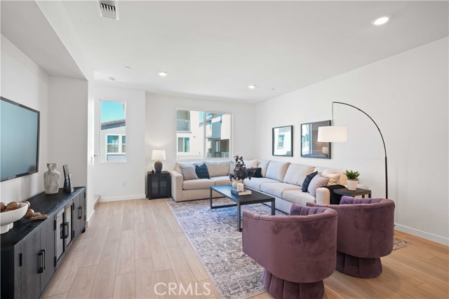 Introducing a stunning brand-new townhome in the heart of Valencia, CA! This spacious 1,858 sq. ft. home offers 3 bedrooms, 3.5 bathrooms, and 3 levels of modern living. Located in a beautiful master-planned community, residents can enjoy a wide range of amenities, including pools, clubhouses, and charming garden houses. Inside, luxury plank flooring flows throughout the entire home, while the kitchen boasts a stylish island with pendant lighting and a walk-in pantry for extra storage. The expansive great room is perfect for entertaining or relaxing, and each bedroom enjoys its own private bathroom for ultimate convenience and privacy. A large private front patio provides an ideal outdoor space for gatherings or quiet moments. Don't miss the chance to own this incredible home in a community that offers both luxury and convenience!