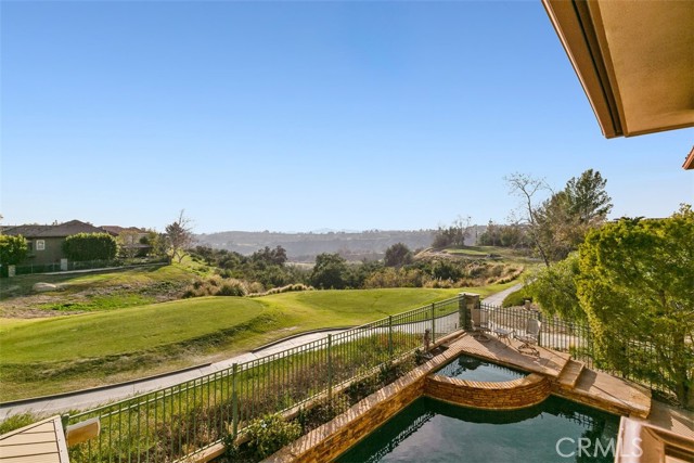 Stunning Pool Home with Golf Course & Mountain Views! This meticulously maintained 4-bedroom plus an office and bonus room, 4.5-bathroom residence offers an exceptional lifestyle. The retreat can be converted into a fifth bedroom for added convenience. Enter to discover a bright and airy formal living and dining area with soaring ceilings and picturesque windows. The gourmet kitchen boasts a walk-in pantry, double ovens, center island with wine fridge, and breakfast bar overlooking the sparkling pool. The adjacent family room features a fireplace and built-in entertainment center. The main-level is complete with a bedroom with ensuite bath, powder room, laundry room, and 3-car garage for added convenience. Upstairs, find a grand primary suite with an office, balcony, and luxurious bathroom with a walk-in shower, soaking tub, dual sinks, and dual-access walk-in closet. Two additional bedrooms, two bathrooms, and a bonus room complete the upper level. The entertainer's backyard is a true oasis with a pool, spa, comfortable seating, built-in BBQ with bar, and kegerator. Enjoy scenic golf course and mountain views from this desirable property. Property has Leased Solar. Located within a prestigious 24-hour guard-gated community, and as a resident of Dove Canyon, you'll enjoy access to a Jr. Olympic pool, tennis courts, pickleball court, sport court, playground, and scenic trails with access to hiking, biking and horse trails. You will also have the option to join Dove Canyon Golf Club, a Jack Nicklaus Signature design with dining, wine room, gym and more.