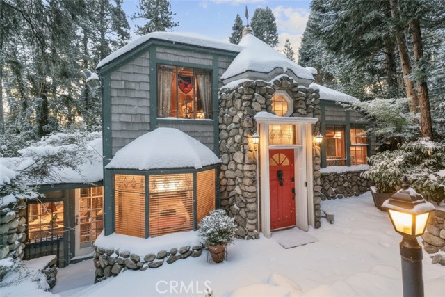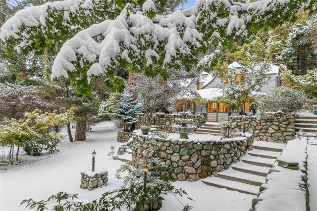 Featured on Zillow Gone Wild and offered fully furnished, this legendary cabin whispers stories of old Hollywood charm and elite escape. Long rumored to be the secret hideout of the Queen of Hollywood, Myrna Loy, The Greystone Manor continues to attract discerning travelers, artists, and tastemakers from around the world. Behind the gates, a winding drive leads to this rare gem, privately situated on an acre. The atmosphere is cinematic: dappled sunlight through towering pines, a stone fireplace flickering in the great room, and expansive windows framing views that shift with the seasons. Surrounded by vibrant oaks, whispering pines, mature bamboo, and bursts of seasonal color from Japanese maples, the setting is enchanting. With parking for over 10 vehicles and a 2-car garage, the manor welcomes guests with a sense of grandeur. Once inside, the main living room features a classic stone fireplace and vaulted open-beam ceiling, paired with rich hardwood floors. The country-style galley kitchen features imported slate flooring that flows seamlessly into the formal dining room, breakfast nook, and sunroom, creating a cohesive old-world warmth. Stained glass windows and French doors enhance the ambiance, while the chandelier-lit dining room opens directly to stone patios, perfect for al fresco meals beneath the stars. The primary suite is nothing short of magical — complete with a custom stone grotto waterfall shower. Just beyond, a whimsical "through the looking glass" hallway leads to an intimate theater room — ideal for screening vintage classics with friends and family. Upstairs, you'll find 4 more guest bedrooms and a dramatic full bath worthy of a Hollywood siren. At the heart of the manor lies the show-stopping grand ballroom — now transformed into a spectacular arcade. With soaring ceilings, dramatic picture windows, full bar, and secret passages tucked throughout, this space is an entertainer's dream. The Manor is truly one of one, an irreplaceable jewel blending romance, history, and storybook charm. A proven income-generating property that commands top-tier nightly rates from high-end clientele. With a steady stream of short-term rental guests, it has earned a reputation as a premier luxury retreat — equal parts private sanctuary and nostalgic escape. Whether you're a buyer with an eye for investment or a romantic drawn to the mystique of Hollywood's golden age, the manor offers a once-in-a-lifetime opportunity to own a piece of timeless California history.