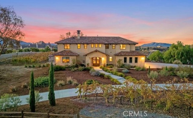 RARE opportunity to own not ONE but TWO Tuscany inspired homes perched high on a hill offering STUNNING 360 views from every angle. Perfectly situated on just over 2 acres these Temecula wine country homes are dripping with old world sophistication. Cul-de-sac location means little to no traffic. The security gate at bottom of the driveway makes for a DRAMATIC ENTRANCE, leading you to up to the estate, passing vineyards and 3-bedroom residence on the right bringing you to the 4-bedroom main residence on your left. Main house offers custom pool with smooth pebble tech coating & glass tile complimented by a 10-person spa. Have THE BEST soiree with your own custom wood fired pizza oven, outdoor wood burning fireplace & gas firepit. Step through the custom knotty Alder entry doors and notice the soaring ceilings while taking in the breathtaking valley views through the solarian windows past the pool, spa and firepit. Formal dining room sits in the Solarian window setting perfect for evening entertaining and taking in the valley lights. Just off the GREAT room adorned with a fireplace, you'll find a spa inspired junior suite with a full bath opposite the office and downstairs powder room. Kitchen features PREMIUM appliances & finishes offering side-by-side Subzero fridge, Wolf range oven, 2 Bosch dishwashers, Wolf microwave, quartz island counter w/ handmade Spanish Subway tile backsplash. Upstairs, a secondary private family room, separating the generous Primary Bedroom & Bath from 2 additional Bedrooms and Baths. Just off the family room, an OVERSIZED balcony w/ INCREDIBLE VIEWS overlooking the tranquil vineyard. Flooring upgrades include Colonial Collection European oil finish Oak, Custom American Oak stair treads & a combination of Quartz, Marble & Granite throughout. In addition, custom wood cabinetry, solid core interior doors, Dual System high efficiency AC units, whole house attic fan, Santa Barbara smooth stucco, Gas burning fireplace w/flagstone facade w/ custom live edge oak marble, authentic clay roofing, and sound system. 2ND home offers 3 beds/3 baths~situated offering sweeping views of San Jac mountains w/Stainless Steel appliances, Quartz counters, & fire pit. Drip irrigation means annual water bill