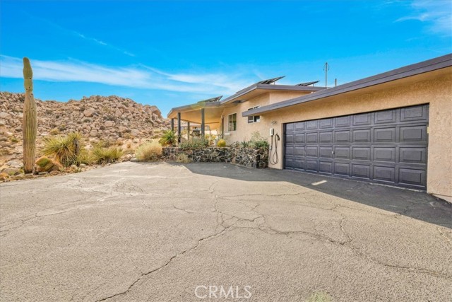 Tucked high in the coveted Western Hills Estates of Yucca Valley, this 2 bedroom, 1 bath gem offers privacy, perched among boulders with sweeping panoramic views and PAID/OWNED SOLAR. A long, private driveway leads to a secluded desert sanctuary where nature, character, and comfort come together beautifully. Step inside to find a home full of vintage charm — original architectural details, warm charismatic finishes, and mid-century desert vibes that are complemented by thoughtful modern updates throughout including a well though out, and more than generous walk in closet. The home features windows that frame the surrounding rock formations and expansive valley views and native vegetation, creating a connection between indoors and out. Outside, enjoy the magic of the high desert from a spacious patio ideal for entertaining, relaxing, or stargazing in total privacy. Whether you're seeking a peaceful full-time residence, weekend escape, or a unique vacation rental, this one-of-a-kind property offers the perfect blend of retro charm, modern ease, and unmatched natural beauty. Just minutes from the heart of Yucca Valley and a short drive to Joshua Tree National Park, yet you feel a world away.