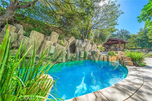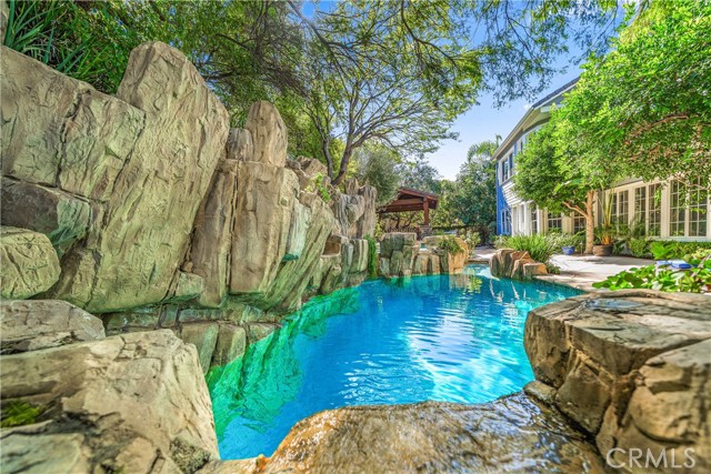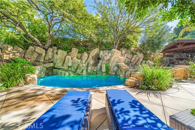 Nestled within the prestigious equestrian community of Nellie Gail Ranch, this meticulously upgraded residence is situated at the heart of a quiet, tranquil, pride of ownership interior cul-de-sac. Spanning nearly 6,000 square feet, this luxury estate offers five bedrooms, five & one-half baths, a dedicated bonus room, billiard parlor, an office with a built-in Murphy bed for guests, & an upper library, providing an exceptional breadth of living spaces for distinguished residents & their guests. The already expansive interior is complemented by a magnificent exterior designed for opulent entertaining & recreation which includes over $15,000 of specimen orange, lemon, lime, avocado, fig, apple trees & grape vines. A private lanai, adorned with sophisticated stone accents & a charming fireplace, sets the stage for al fresco dining & relaxed evenings. Beyond the lanai, a resort-style rock pool captivates with cascading waterfalls, a thrilling 35-foot slide, & a walk-in kiddie pool, ensuring endless hours of enjoyment. French doors invite a seamless transition to private interior courtyards with a koi pond creating an elegant flow ideal for both intimate gatherings & grand celebrations. Have an intimate dinner in the outdoor covered atrium in front of a cozy fireplace, the billiard parlor provides a setting for engaging games, while the upper bonus room offers a secluded space for cinematic indulgence. Culinary artistry flourishes in the gourmet kitchen, equipped with a custom mastery stove hood, a spacious seating island, Sub-Zero refrigerator & freezer, Wolf appliances, 2 dishwashers, abundant granite countertops, a convenient butler's pantry, & an integrated desk. The primary suite serves as a serene retreat, featuring a romantic fireplace & a spa-inspired primary ensuite with its own private deck, perfect for peaceful morning escapes. With a state-of-the-art entire home entertainment system, that can be accessed & enjoyed from every room of the house including the atrium & the backyard, solar panels, Tesla battery bank & gripping surround sound systems in both the family & master bedrooms. The community boasts access to 25 miles of equestrian trails, community clubhouse, tennis center with 12 championship courts, a swimming pool, numerous parks & green spaces perfect for picnics & relaxation. Nellie Gail Ranch's location provides the easy access to the various vibrant attractions beloved by Orange County residents. Welcome Home!