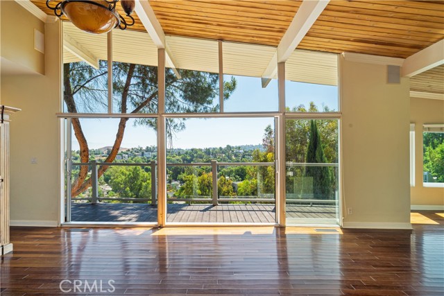 Mid-Century Modern Gem South of the Boulevard! Discover this amazing Woodland Hills pocket and this architecturally striking single-level mid-century retreat. Inside, the open-concept layout is flooded with natural light from expansive walls of glass providing peaceful treetop vistas and Valley views. The double paned, double sliding glass door provides indoor-outdoor flow. Thoughtfully designed living space creates an inviting atmosphere perfect for both everyday living and entertaining. Showcasing two bedrooms, two bathrooms, and a flexible bonus room offers endless possibilities - home office, creative studio, or guest space. Nestled in one of Woodland Hills' most coveted SoBlvd neighborhoods, this home blends iconic design with a unique sense of privacy and sophistication. You'll also enjoy close proximity to acclaimed dining, shopping, scenic hiking /biking trails, and convenient freeway access.