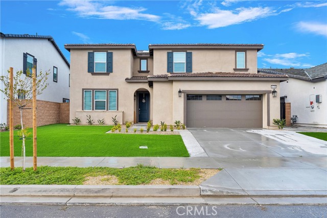 *MASSIVE PRICE REDUCTION!* Welcome to 16708 Yarrow Lane, a stunning four-bedroom, three-bathroom home with an office in the highly desirable Gardens at Arboretum community in North Fontana. This brand-new 2024-built residence offers 3,118 square feet of beautifully designed living space with modern upgrades and exceptional functionality. This two-story home features a spacious and versatile layout. The first floor includes an office that can easily be converted into a fifth bedroom, along with a full bathroom for added convenience. The upgraded interior boasts luxury tile flooring, upgraded baseboards, quartz countertops, white shaker cabinetry, and automatic roller shades throughout the home. The chef's kitchen is designed for entertaining, featuring an expansive island, premium finishes, and ample storage including a walk in pantry. Upstairs, a massive loft provides a second living space ideal for relaxation or play. Designed with energy efficiency in mind, the home includes Tesla solar panels, a Tesla battery pack, and a 220V outlet for EV charging in the oversized three-car tandem garage. Both upstairs bathrooms offer dual sinks for added convenience. The front and backyard are beautifully landscaped with artificial turf and concrete, ensuring a low-maintenance outdoor space. Located in a gated community, this home offers access to resort-style amenities, including a pool, spa, gym, clubhouse, pickleball courts, parks, a dog park, and a playground. The property is situated near top rated schools, shopping centers, and provides easy access to both the I-15 and 210 freeways, making commuting simple and convenient. This move-in-ready home is a rare opportunity to own in one of North Fontana's most sought-after neighborhoods. Schedule a private tour today.