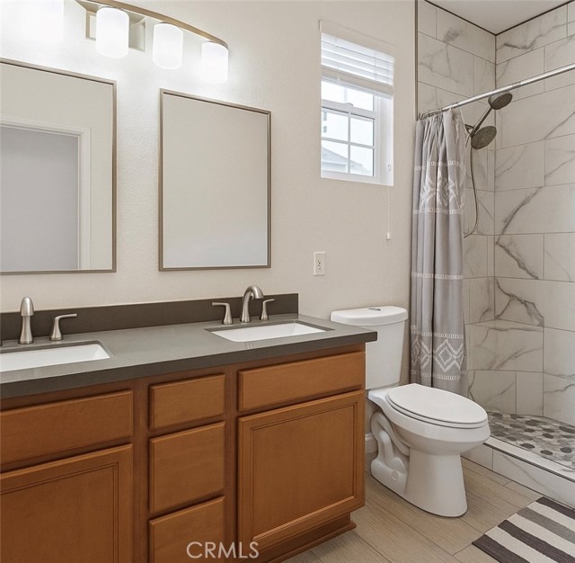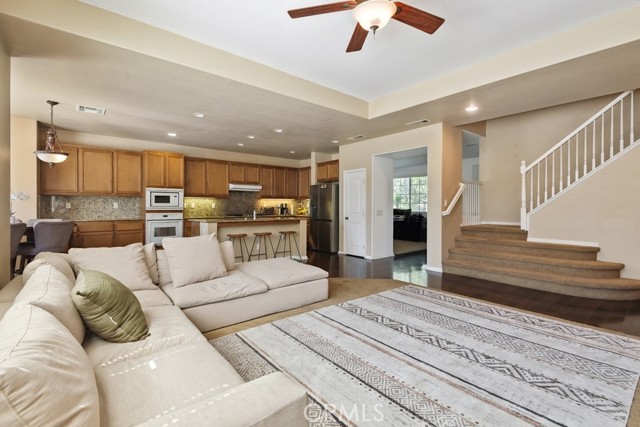 Luxurious and spacious, this 5-bedroom, 3-bath home is ideally located in the highly desirable Rosetta Canyon community — just minutes from shopping, dining, and I-15 for convenient commuting. Enter inside to soaring 11-foot ceilings, rich wood flooring, and an oversized granite island kitchen featuring upgraded cabinetry and a seamless flow into the open-concept family room — perfect for everyday living and entertaining. The first floor is designed to be wheelchair accessible, featuring a level entry, plus a large downstairs bedroom, and a full bath with a walk-in shower — ideal for guests or multigenerational living. Upstairs, retreat to an expansive primary suite with a spa-like en-suite bath, while generously sized secondary bedrooms offer ample space and natural light. The large backyard with stamped concrete is ready for outdoor enjoyment, and a 3-car garage provides plenty of storage. Located near Earl Warren Elementary, Elsinore Middle school and Temescal Canyon high school, and surrounded by resort-style community amenities including parks, athletic fields, tennis and basketball courts, BBQ areas, a dog park, and a scenic lake — this home truly has it all.