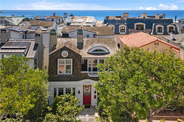 Experience coastal living at its finest in this custom Cape Cod – inspired home by Waterpointe Custom Home Builders, steps from the sand and the world-famous Wedge. Designed by renowned architect Chris Brandon, this 3-bedroom, 5-bath residence showcases timeless craftsmanship, thoughtful details, and a modern yet classic beachside aesthetic. Inside, an open-concept great room welcomes you with soaring ceilings, abundant natural light, warm wide-plank white oak floors, and a cozy fireplace. The gourmet kitchen features custom woodworking, hand-selected stone countertops, stainless steel appliances, and wide-plank hardwood flooring throughout. Retreat to the primary suite complete with its own fireplace and spa-like bath, or enjoy coastal breezes from the charming front loggia. Designed with versatility in mind, the home features bonus rooms on the second and third levels, as well as a spacious third-story view deck, perfect for entertaining or relaxing under the stars. The theatre room has black-out shades for perfect lazy afternoon viewing. Built with convenience and luxury in every detail, the property is also elevator-ready for future access to all levels. This custom residence seamlessly blends elegant design with the relaxed charm of Newport Beach living — all just moments from the surf, harbor, and vibrant local amenities.