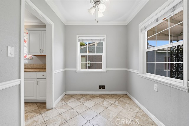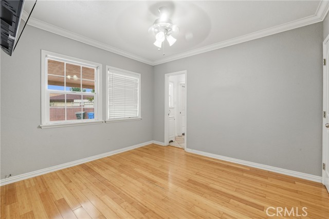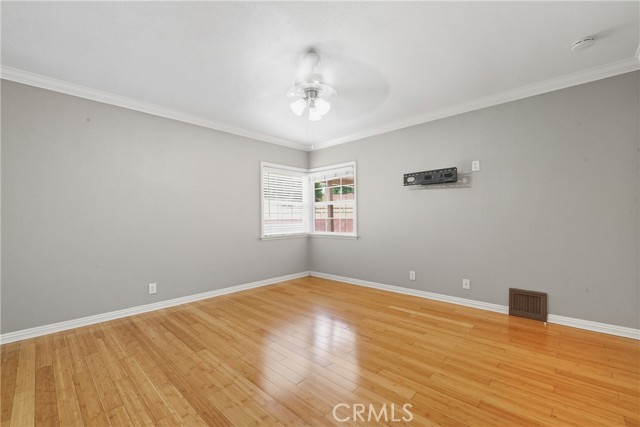 Welcome to this charming and well-maintained home perfectly situated in one of Whittier's most sought-after communities — close to shopping, dining, parks, and top-rated schools! As you step inside, you are greeted by an expansive formal living room filled with natural light and highlighted by a stunning fireplace, creating a warm and inviting atmosphere. Just opposite the entryway, you'll find a dedicated formal dining room, ideal for entertaining, which flows seamlessly into a versatile bonus room — perfect for a home office, craft space, or study. This home boasts beautifully maintained hardwood floors, elegant crown and trim molding, and thoughtful details throughout. The primary bedroom offers an extra-spacious retreat featuring a walk-in closet, additional built-in storage, and direct access to the en-suite bathroom. For your comfort, the home includes central heating and ceiling fans in key living areas, as well as a separate indoor laundry room for added convenience. Situated on a generous 6,000 sq. ft. lot, the backyard provides endless opportunities for entertaining, gardening, or room to create your dream outdoor space. The detached garage offers potential for an ADU conversion, making it a fantastic investment opportunity. A long driveway accommodates up to four cars or even an RV. Don't miss your chance to own this beautiful home with so much to offer. Come see it for yourself!