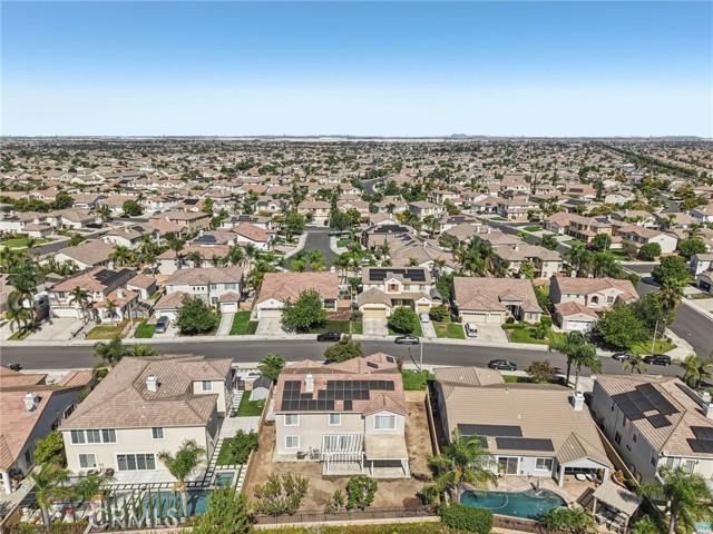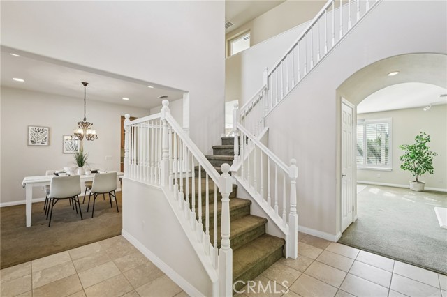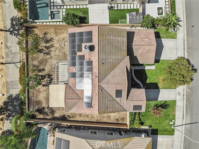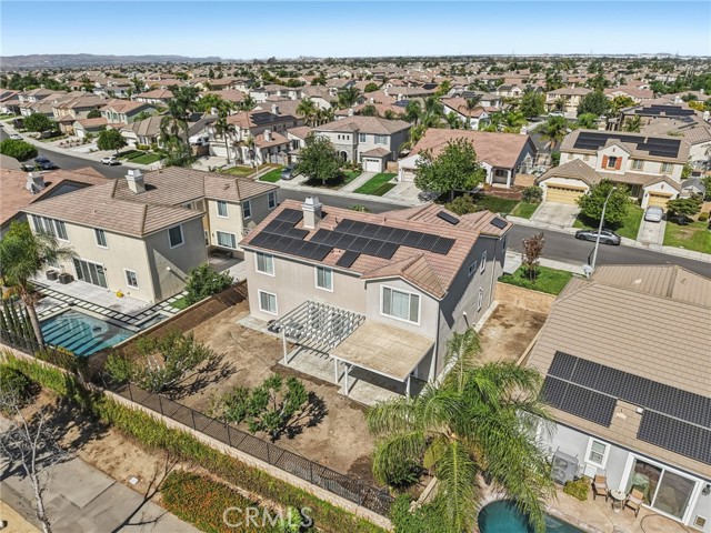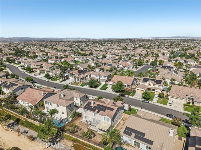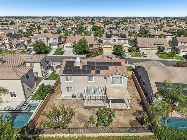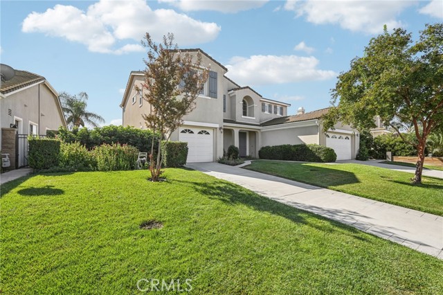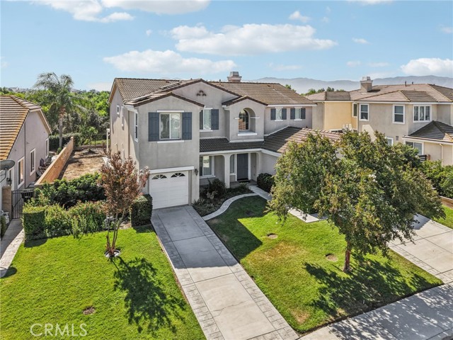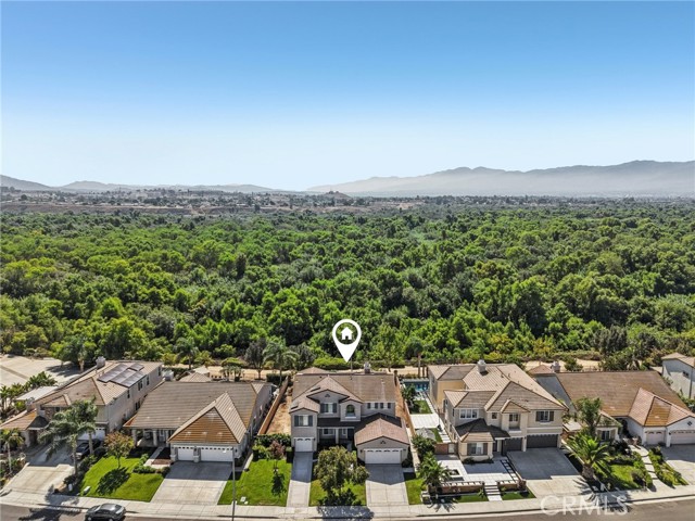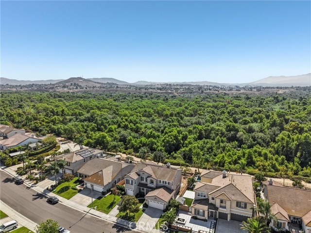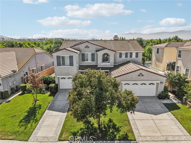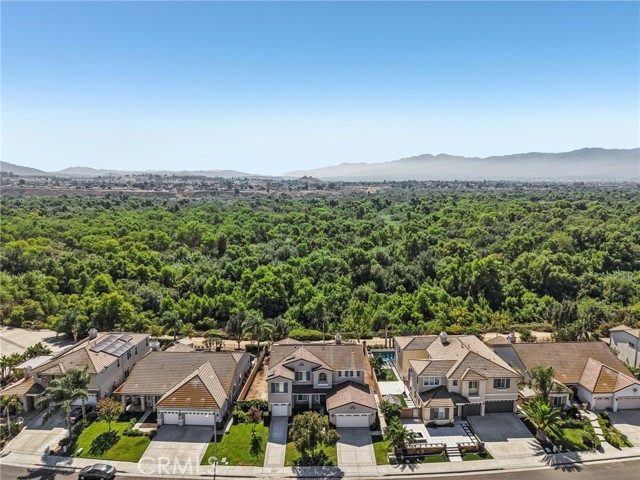 Unmatched Views & Energy Independence! This Eastvale home is a true standout, offering style, space, VIEWS, and modern efficiency with paid-off solar panels and two Tesla backup batteries — providing peace of mind, energy savings, and reliable power. From the moment you arrive, the curb appeal impresses with a lush green lawn and manicured landscaping. Inside, you're welcomed by a tiled entry and an open-railing staircase. To the left is a formal dining room that can double as a home office or playroom, and to the right, a formal living room. At the heart of the home is the expansive family room with a cozy fireplace and media niche, seamlessly connected to the open kitchen. The chef's kitchen offers abundant cabinetry, granite countertops, a built-in cooktop, double oven, large center island, and breakfast nook. Sliding glass doors lead to the backyard for effortless indoor-outdoor living. The main floor also includes a bedroom and full bathroom, and a laundry room with a sink and cabinetry. Upstairs, the primary suite captures sweeping views of the Santa Ana River and surrounding greenbelt. The spa-inspired bathroom includes dual sinks, a soaking tub, walk-in shower, and a spacious walk-in closet. Four additional bedrooms and two more bathrooms provide plenty of room for family and guests. Plantation shutters throughout add a touch of elegance. The backyard is designed for both relaxation and entertaining, with a covered patio, stamped concrete, a large grassy area, and breathtaking greenbelt views that make every day feel serene. With its unobstructed views, fully paid-off solar system, and two Tesla Powerwall batteries, this home combines natural beauty with energy-smart living — a rare find that delivers comfort, savings, and sustainability.