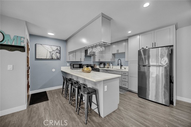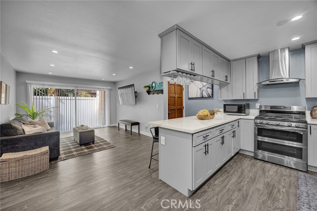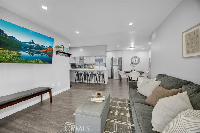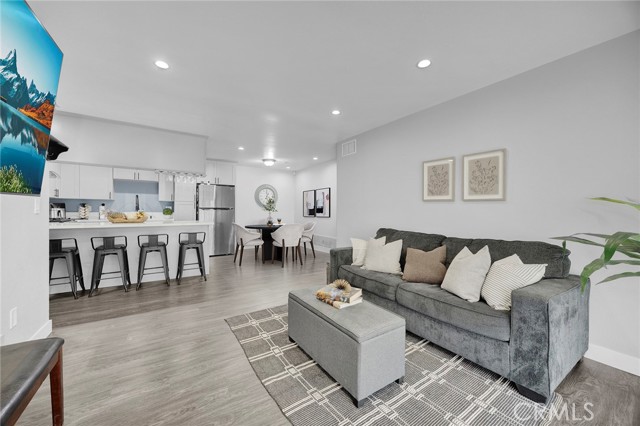 Welcome to South Coast Villas, a beautiful, gated community in the heart of Santa Ana! This Turnkey lower-level Condo features two spacious bedrooms, and one fully remodeled bathroom, perfectly blending comfort, style, and functionality. Thoughtfully updated throughout, this perfect home showcases recessed lighting, new ceiling fans, modern finishes, and wood flooring, making it completely Move-In Ready! Enjoy an open and inviting floor plan that seamlessly connects the living, dining, and kitchen areas, creating an ideal space for both relaxing and entertaining. The beautifully upgraded kitchen is a highlight, featuring stainless steel appliances, a sleek range hood, quartz countertops and updated cabinetry...perfect for both everyday cooking and entertaining. The private patio offers a perfect spot for morning coffee or evening unwinding, with easy access to lush community grounds. Located in a highly desirable area, this gorgeous condo is just minutes from South Coast Plaza, Segerstrom Center for the Arts, World-Class Dining, Shopping, and convenient freeway access for easy commuting throughout Orange County. Residents of South Coast Villas enjoy an impressive list of HOA Amenities including sparkling swimming pools, a soothing jacuzzi, an amazing gym, play area, EV Charging Stations, and the peace of mind of a secured gated community. The HOA also covers Water, Gas & Trash Services, adding exceptional value and convenience! Whether you're a First-Time buyer, downsizing, or seeking an investment property, this beautifully updated condo offers the perfect combination of location, comfort, and value!
