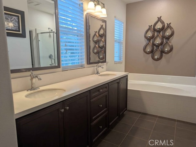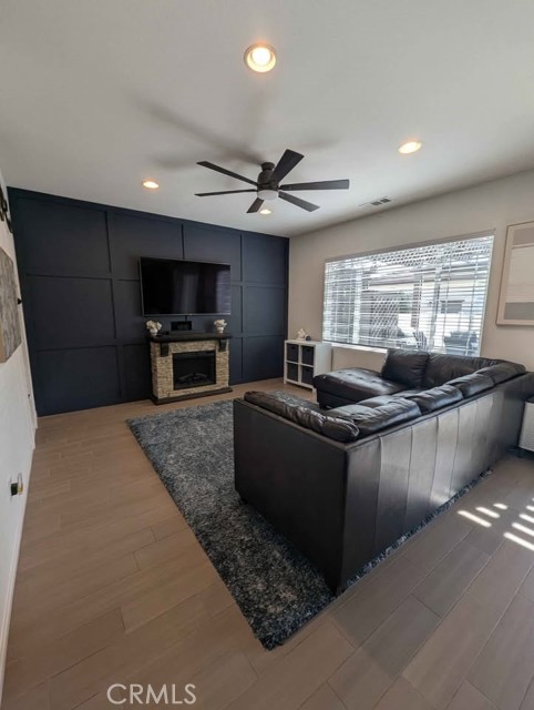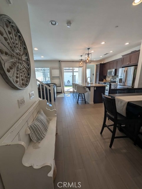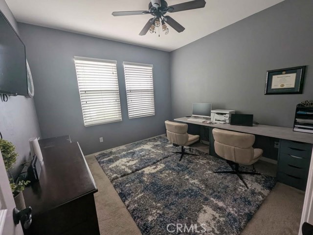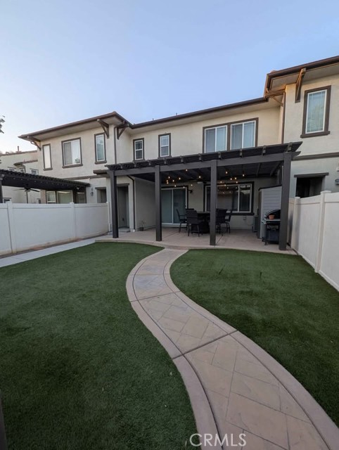 Welcome to a home designed for effortless living and entertaining! Enter through the covered front patio with its cooling ceiling fan and neighborhood view. The ground floor offers a flexible bedroom/office near a convenient 3/4 bath. The heart of the home is the open-concept living area, where the kitchen, dining, and family room flow seamlessly. Look for the hidden storage behind the swiveling bookcase in the family room! A highlight of the home is the free-flowing access to the backyard, through a sliding glass or swinging door, making indoor/outdoor gatherings a breeze. The low-maintenance backyard features an aluminum patio cover with a ceiling fan, attractive stone-textured stamped concrete, and artificial turf. A 2-car garage is situated on the south side. The upper level features the main bedroom suite with its oversized closet and backyard view, two secondary bedrooms, two full bathrooms, and a dedicated laundry room. Enjoy resort-style living in College Park! This covers access to incredible amenities including pools, spa, outdoor BBQ areas, clubhouse, and fitness center that is open 24/7. Conveniently located near top performing schools, shopping, dining, and with easy access to the 71, 91, and 60 freeways. Enjoy the ultimate in low-maintenance living combined with amazing community perks.