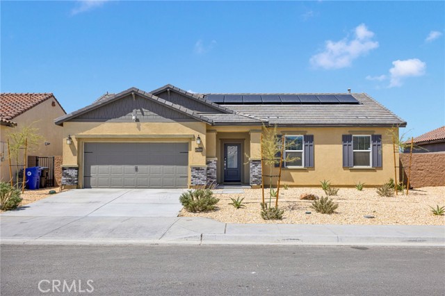 Step into this stunning 2023 new construction home in the desirable Desert Willow Village community. Featuring 3 spacious bedrooms, 2 modern baths, granite countertops, stylish vinyl plank flooring, and a Wi-Fi – enabled garage door opener, this home blends comfort with convenience. Enjoy the bonus of fully paid solar panels for energy savings year-round. Perfectly located just 3.5 miles from High Desert Gateway and 4 miles from Adelanto Marketplace, with quick access to Highway 395 — making it an ideal choice for commuters who work down the hill but want to come home to peace, space, and affordability. Close to shopping, dining, and entertainment, this home delivers both value and lifestyle..