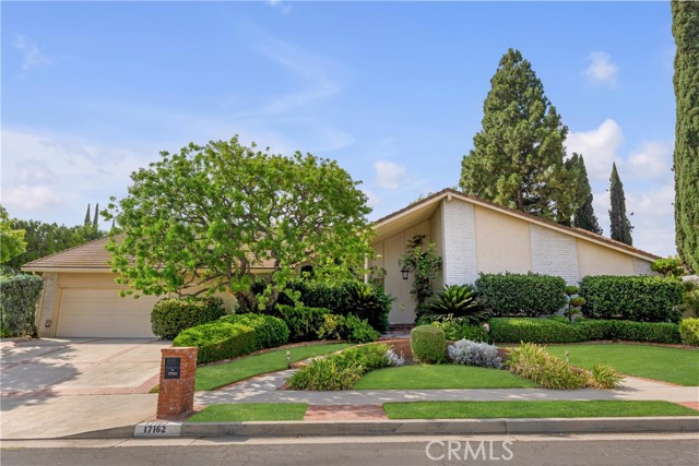 Wonderful, mid-century, ranch-style, 5 bed, 3.5 bath, over 3700 sqft home set on an expansive 16,228 sqft lot in quiet residential neighborhood in Northridge blends timeless architecture with spacious comfort. Great curb appeal with A-frame roofline, white brick panels, wide drive with brick ribbons, circular walkway, and manicured green lawn framed by hedges and shade tree. Elegant double doors open into a formal entry and open, inviting home, with tasteful and elegant touches like parquet floors, crown molding, high ceilings, and recessed lighting throughout. Formal sunken living room is a bright and airy space, perfect for entertaining and gatherings with French doors to the patio, and open flow to the dining area and sunken conversation pit. Dining room showcases a wide archway, lighted cabinetry, and passthrough to the conversation pit, which features a marble-surround fireplace, wet bar, and built-in shelves for display. Expansive, informal family room offers built-in shelving, French doors to the yard, and a pass-through to the bright eat-in kitchen. Kitchen boasts white cabinetry, white appliances, granite counters and backsplash, and a cozy breakfast nook. A powder bath and dedicated laundry room add convenience, while a nearby private bedroom with adjacent ¾ bath is perfect for guests or a home office. Down the hall, the primary suite impresses with double-door entry, mirrored walk-in closet with custom built-ins, generous space with room for a sitting area and French doors to the backyard. The en-suite, spa-style bath offers heated tile floors, marble counters, beveled mirrors, plantation shutters, jetted soaking tub, and separate shower. Three additional, sizable bedrooms with large windows, including one arranged as a study with built-in bookshelves and desk that could be converted back, share a full hall bath with dual-sink marble vanity and access to the side yard. Additional features include dual pane windows, dual zone HVAC, dual water heaters, and an attached 2-car garage with overhead storage and direct access. The spacious backyard is a true retreat with a large pergola-covered deck, in-ground pool with brick coping, sprawling lawn, and mature landscaping. Well situated in Granada Hills Charter district, near shopping, dining, recreation, and entertainment, CSUN, local parks, and major transportation arteries. This property offers both immediate comfort and a canvas for personalization in prime Northridge setting. Don't miss out.