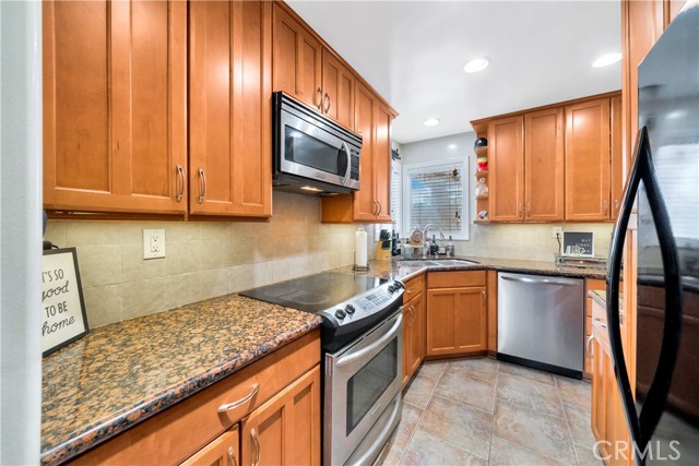 Welcome home to the highly sought-after Stonegate Community in the heart of West Garden Grove! This beautifully maintained single-level, end-unit condo offers 2 spacious bedrooms and a bright, open floor plan. The upgraded kitchen boasts gleaming granite countertops, stainless steel appliances, abundant cabinetry, and a convenient dining area — perfect for casual meals or entertaining. Rich hardwood-style laminate flooring flows seamlessly throughout the home, leading to a generous living room that opens to a private, oversized patio — ideal for morning coffee or evening gatherings. An indoor laundry closet is neatly tucked away in the hallway, and multiple storage closets provide exceptional organization. Comfort comes easy with a newer central A/C and heating system. The property includes a detached 1-car garage with built-in storage plus an additional assigned carport space for added convenience. Residents enjoy resort-style amenities including a sparkling swimming pool, relaxing spa, and lush greenbelts. HOA covers water and trash service for worry-free living. Located within walking distance of award-winning Garden Grove schools, local parks, and shopping, this home perfectly blends comfort, style, and an unbeatable location. Don't miss your chance to own this turnkey retreat in one of the area's most desirable communities!