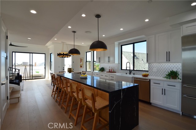 Welcome to a stunning new construction Craftsman masterpiece in the heart of prestigious South Redondo Beach. Spanning 4,319 square feet across three levels, this home offers 5 bedrooms and 7 bathrooms, thoughtfully designed with modern elegance and timeless craftsmanship. Step inside and be greeted by chic flooring, custom design details, and beautiful chandeliers that set the tone for refined coastal living. The elevator provides effortless access to all levels, including a rooftop deck with panoramic views of the Pacific Ocean and coastline. The gourmet kitchen is a chef's dream, featuring a spacious pantry, large island, and Thermador appliances, perfectly paired with custom cabinetry and built-in Sonos speakers for seamless entertaining. Each bedroom enjoys its own dedicated bathroom and custom-built closets, while the luxurious primary suite boasts a spa-inspired bathroom with a soaking tub, dual vanities, and a walk-in closet with custom drawers. Enjoy cozy evenings by chic fireplaces or relax in the 3rd-floor living room and kitchen with breathtaking coastal views. Modern conveniences include central air and heating, paid-in-full solar panels, and impeccable design details throughout. This home is more than just a residence — it's a statement of luxury, comfort, and California coastal lifestyle.