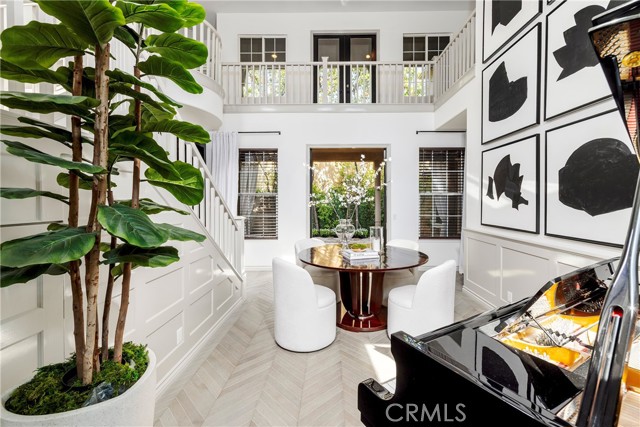 TV-featured Magazine- Quality designer model of a home in Irvine's prestigious triple guard-gated Northpark community with French oak chevron wood floors, dramatic double-height dining room, open concept family room and abundant natural light. Tucked on a private cul-de-sac with 4 bedrooms plus office (optional 5th), loft, and first-floor guest suite. Custom details include wainscoting/paneling, elegant lighting and hardware, and refined millwork throughout. Spacious living areas flow to outdoor patios with stone fireplace and south-facing garden. The primary suite offers a spa-style bath with freestanding soaking tub, Carrara marble floors, mirrored wardrobe walls and dual vanities. Chef-ready kitchen features quality finishes and thoughtful design. Residents enjoy Northpark amenities: 5 pools, tennis courts, 11 parks/playgrounds, sport court, clubhouses and 24-hour guard service. 0.3 miles to Northpark Plaza with H Mart grocery, Starbucks Coffee, Bruegger's Bagels, CVS Pharmacy, Chase Bank and casual dining; minutes to additional shopping and dining corridors. 0.6 miles to Hicks Canyon Elementary, 1.1 miles to Orchard Hills Middle, 1.6 miles to Beckman High (top-rated schools). Easy access to Culver Drive and Portola Parkway for commuting; approximately 9 miles to Newport Beach and Pacific Coast beaches. Includes video tour and floor plan.