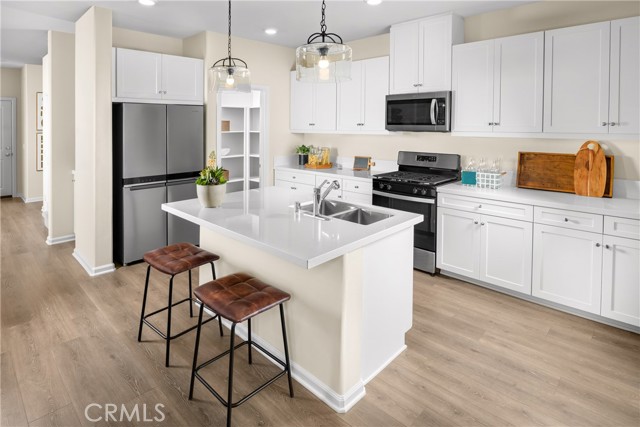 This professionally designed model home in the gated Iris Park community of Moreno Valley is move-in ready, fully landscaped — with fantastic seller incentives available! Ask about limited-time incentives and flexible financing options that may help to reduce closing costs or monthly payments. If you've been renting and dreaming of a home that's fully finished, low maintenance, and just feels "done," this is the one. The Lansing floor plan offers 4 bedrooms, 2.5 bathrooms, a 2-car garage, and an open-concept layout that's both comfortable and functional. The first floor features a spacious Great Room and dining area that flow into a modern kitchen with a large island, quartz countertops, upgraded cabinetry, and walk-in pantry. Upstairs, you'll find all four bedrooms, including a generously sized Primary Suite with dual sinks, a walk-in shower, and a large walk-in closet. A flexible loft adds extra space for a home office, media zone, or play area. The laundry room is conveniently located upstairs near all bedrooms. As a professionally curated model home, it includes over $100,000 of designer-selected finishes, upgraded flooring, and complete landscaping — so you don't have to worry about a thing. Just bring your furniture and move in. A full Solar System is Included!! Built by Beazer Homes, the nation's #1 builder of DOE-certified Zero Energy Ready Homes, this home is designed for energy efficiency, long-term savings, and improved indoor air quality with Indoor Air Plus certification. Please note - the pictures are of the actual home!