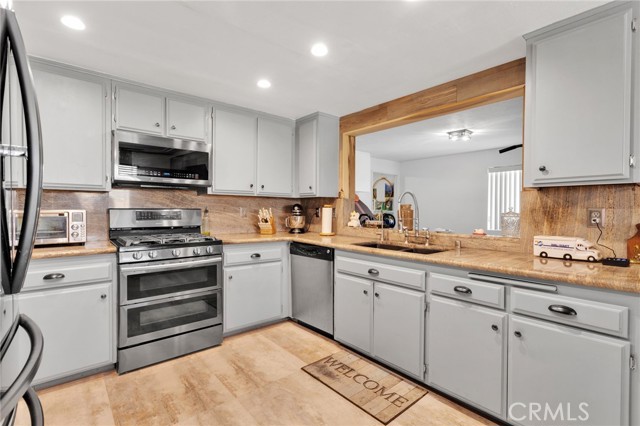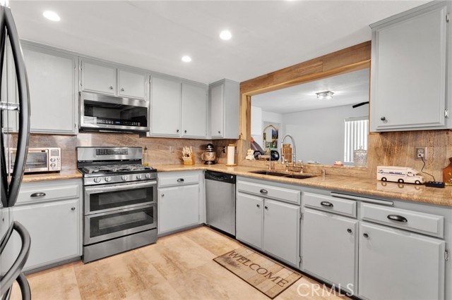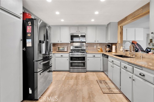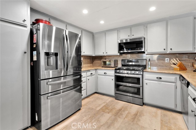 Appliances: Dishwasher, Double Oven, Free Standing Range, Garbage Disposal, Gas Oven, Gas Range, Gas Stove, Gas Water Heater, Ice Maker, Refrigerator, Self Cleaning Oven, Water Line to Refrigerator, Water Purifier, Water Softener