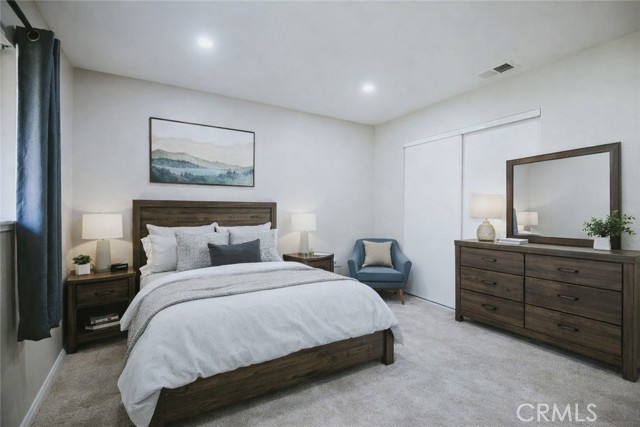 Welcome to this beautifully remodeled condo in the highly desirable Lakes of Corona, offering serene park and mountain views. Tucked away at the back of the community, this second-floor home features two bedrooms and one full bathroom in a quiet, private setting. Inside, enjoy a bright and spacious layout with a crisp white kitchen offering ample cabinet space, washer/dryer hookups, and modern finishes throughout. The primary bedroom includes a walk-in closet and direct access to a private balcony overlooking the park — perfect for relaxing with your morning coffee. Recent upgrades include a newly remodeled bathroom with a brand-new bathtub, plush new carpet, recessed lighting throughout, and smart lighting conveniently controlled from your smartphone. Stay comfortable year-round with a newer, ultra-efficient air conditioning system. This truly move-in-ready condo is part of a resort-style community featuring a scenic lake with walking paths, a swimming pool, BBQ areas, tennis and basketball courts. Conveniently located near supermarkets, schools, medical centers, and with easy access to the 91, 15, 71, and 241 freeways. HOA recently replaced the roof and patio is next project in line. Ideal for first-time homebuyers — schedule your private showing today! This property may qualify for a Chase Homebuyer Grant to help reduce mortgage costs (see supplement for details). Some images are digitally altered to enhance images.