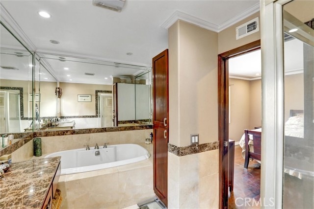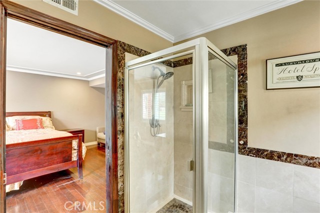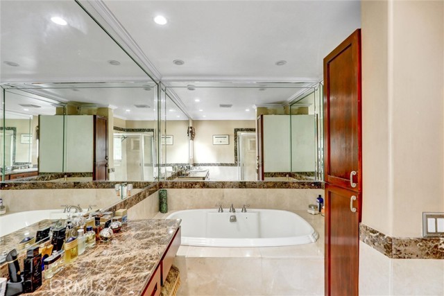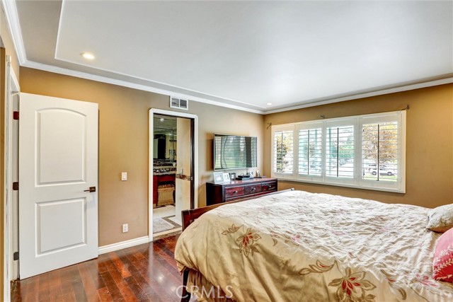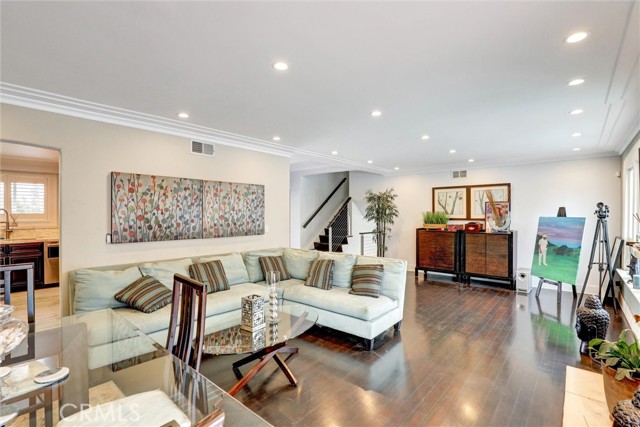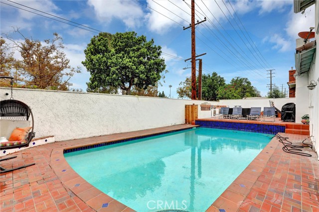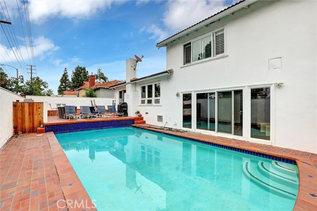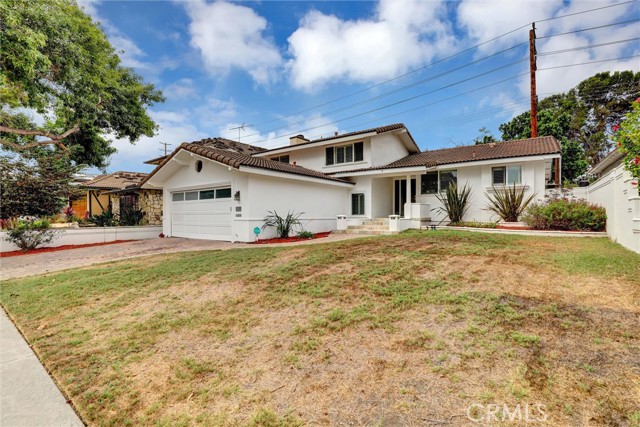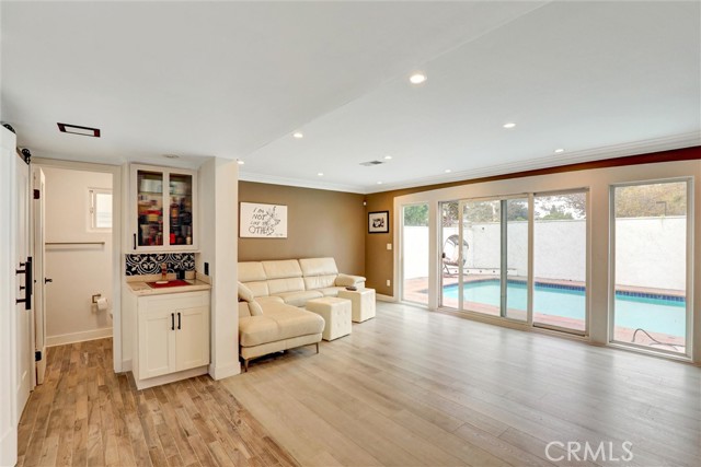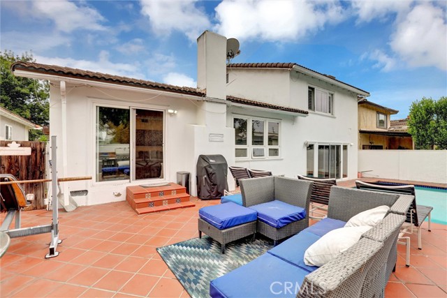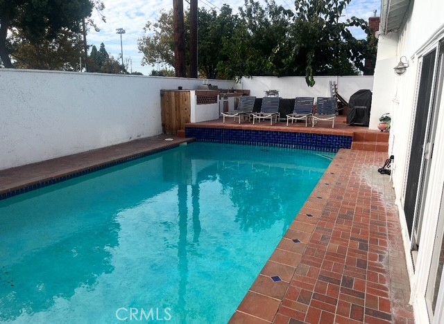 PRICE REDUCTION - STUNNING, ENTERTAINER'S DREAM HOME!! This home is absolutely move-in ready home. This home brings in a ton of natural light, it is a refreshingly fully renovated and family friendly home in well-located and maintained Cerritos. This 5-bedroom 3-bath home is facing east. The floor plan is an open, easy flowing home. Living room, dining room, kitchen dining area, and family room are each elegantly, uniquely and tastefully decorated. This home is immaculate! Spacious living room with cozy fireplace, and formal dining room that opens to an inviting outdoor open patio, BBQ grill, fire pit, outdoor fryer, built-in outdoor kitchen and large pool - 4' to 8' deep. Step down into a separate family room, where two bedrooms, laundry room and bathroom with shower are located (ideal for guests or share this home with family). The open kitchen includes upgrades - from porcelain countertops, floors, new kitchen appliances, gas top range, range hood and dishwasher; custom cabinetry, countertops in fully renovated kitchen and bathrooms, updated vanities, appealing fresh paint throughout, wood floors, tile floors, and modern manufactured quality vinyl wood-like floors. This home includes new windows, copper plumbing, streamlined, efficient recessed lighting throughout the house. Direct access to the large 2 car garage. Custom wood shutters, new HVAC, spa tub in master bathroom. 2 bedrooms downstairs and 3 bedrooms upstairs. Walking distance to Liberty Park, Los Cerritos Mall, and located in the award-winning ABC school district. This home is a MUST SEE!!