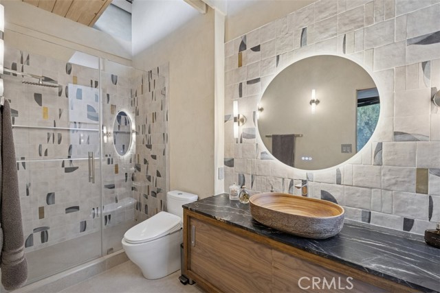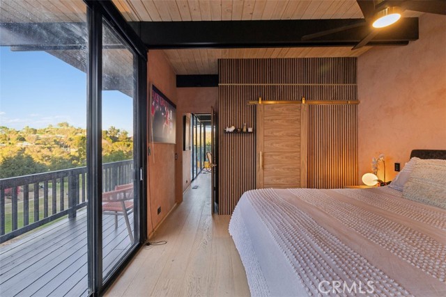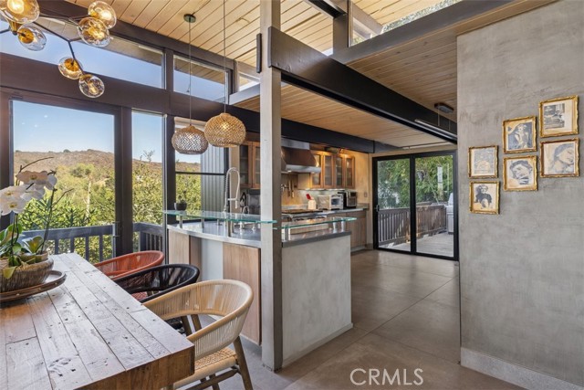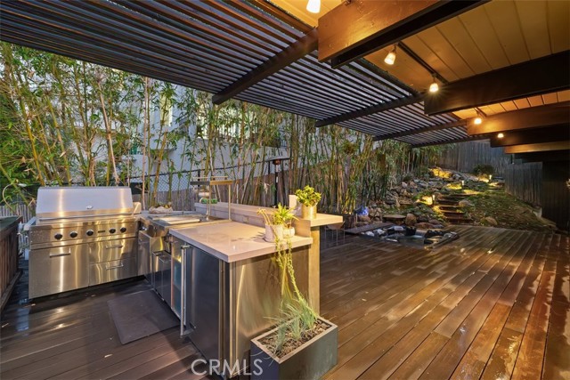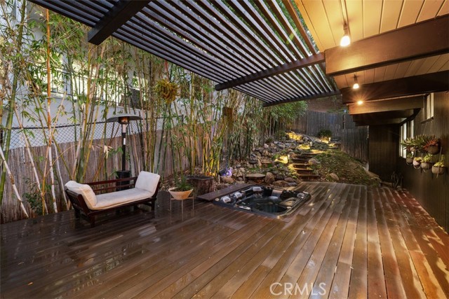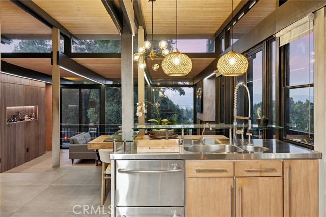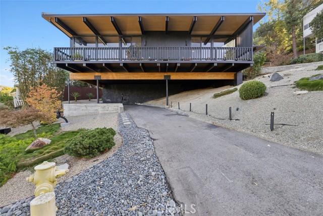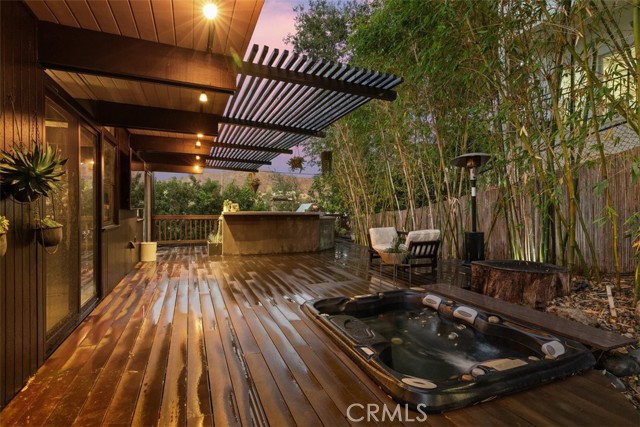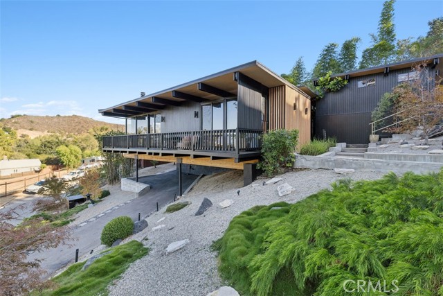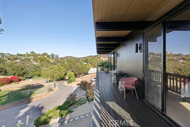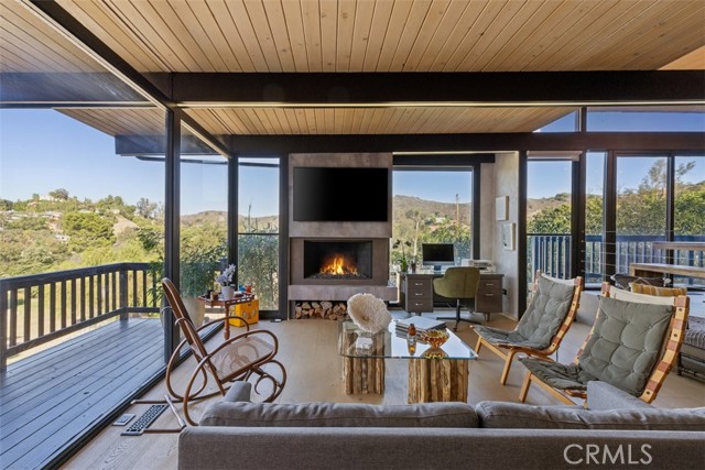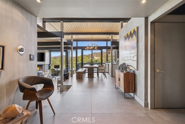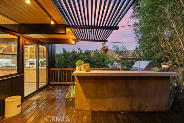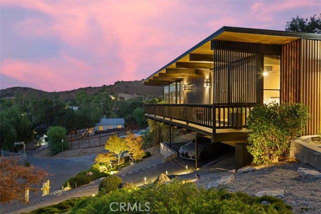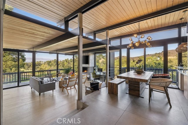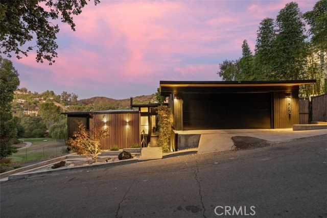 A Rare Mid-Century Modern Gem with Iconic Design and Panoramic Views Mid-century modern homes of this caliber rarely come to market. Designed by architect Dale Bergerson with legendary A. Quincy Jones. built in 1965 for the Zimmerman family, this architectural treasure embodies the clean lines, open spaces, and indoor-outdoor flow that define the era. Perched on a knoll above the 15th green of the Woodland Hills Country Club, the home captures sweeping mountain and golf course views through walls of glass and clerestory windows. Natural light floods the interior, highlighting Venetian plaster walls and distinctive tile and white oak flooring. Post and Beam construction creates a timeless, airy ambiance. The living space is centered around a dramatic gas fireplace and seamlessly connects to both front and rear outdoor areas. A Teak wood entertainer's deck spans the back of the home, featuring a Viking outdoor kitchen, built-in spa, and tranquil custom waterfall, all framed by a towering wall of timber bamboo for added privacy. The chef's kitchen is fully outfitted with premium appliances, including a Wolf range, Sub-Zero glass refrigerator, Miele built-in coffee station, and a temperature-controlled wine cooler. Three spacious bedrooms and two bathrooms are intelligently placed along a wide, open floor plan. The primary suite opens directly to the front deck, offering morning sunlight and evening serenity. The landscaping is a masterclass in balance and simplicity, inspired by traditional Japanese garden design. Additionally, a newly remodeled bonus room below the main residence offers flexible use — currently serving as a home theatre and art studio. Thoughtfully designed and impeccably maintained, this home is a rare opportunity to own a piece of architectural history with all the luxuries of modern living.