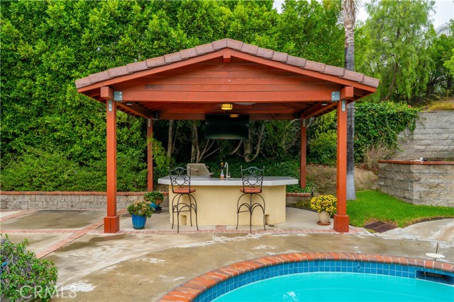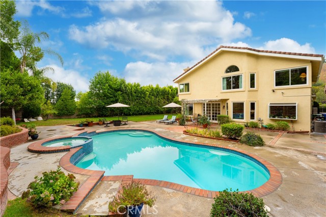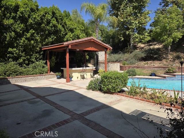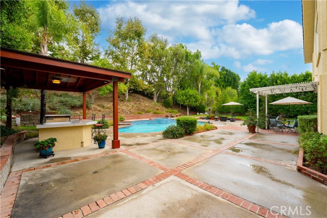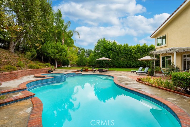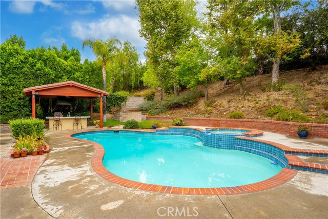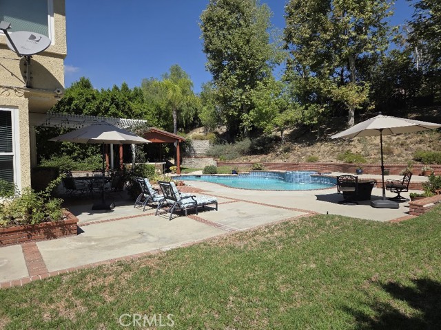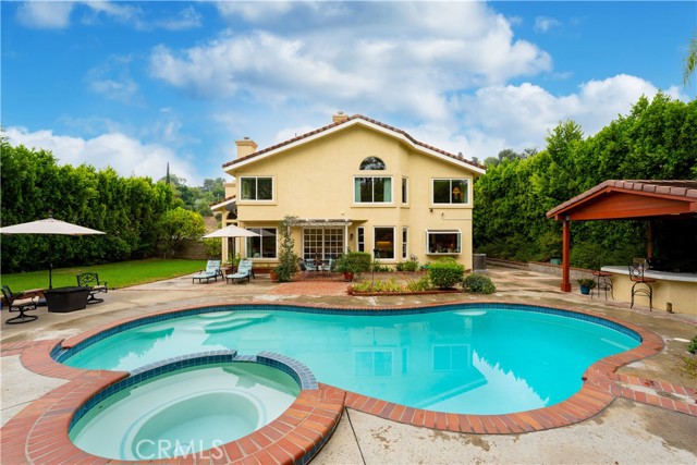 This sharp Greyhawk Ranch home is love at first sight! Its bright, open floor plan with high ceilings is an entertainer's delight. The home has beautiful hardwood floors, a kitchen that will leave the household gourmet, looking forward to creating epicurian delights in the kitchen, and it opens to a great family room with a fireplace, too. There is also a Great Living room with the second of three fireplaces, a large formal dining room, and a downstairs bedroom with a full bath. Upstairs, you have four large bedrooms, one of which could be used as a bonus room and a primary suite with a fireplace, a large walk-in closet and more. The yard has it all: a beautiful pool and spa, a covered BBQ area with refrigerator, sink, and a large TV. Home has a tankless water heater, pool, spa, and security cameras all controlled by cell phone. This home has it all and much, much more. Hurry homes in GreyHawk Ranch, do not last long! You don't want to miss this one!