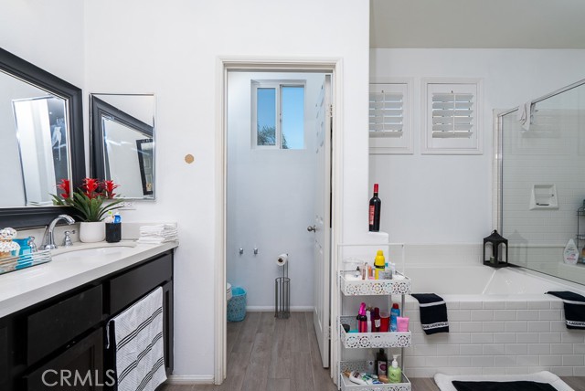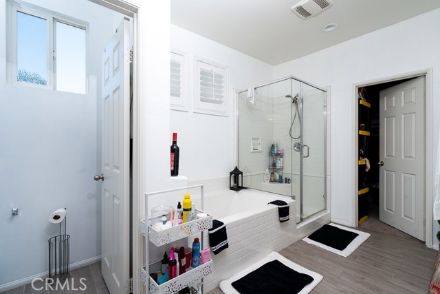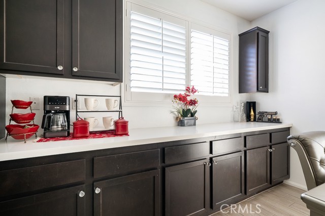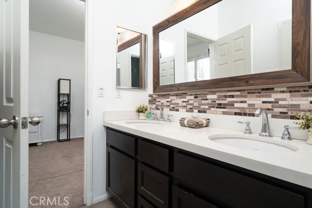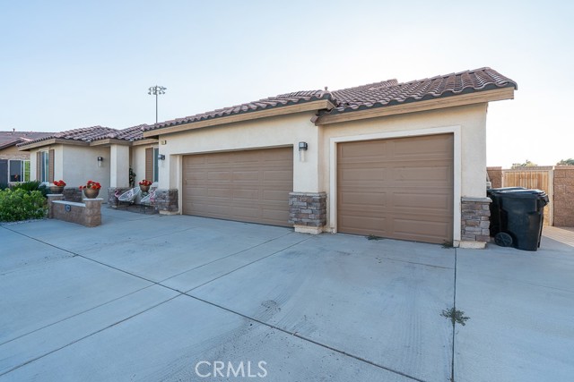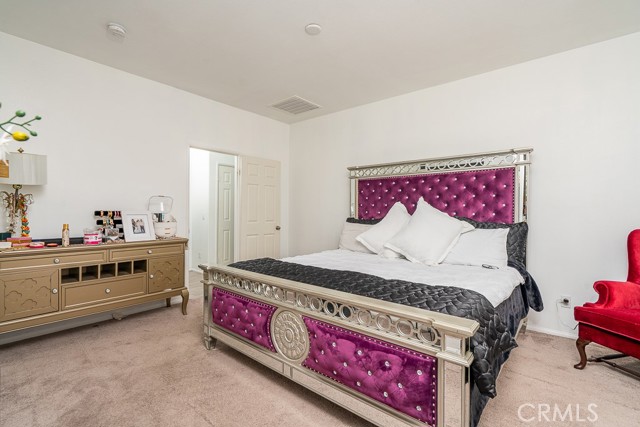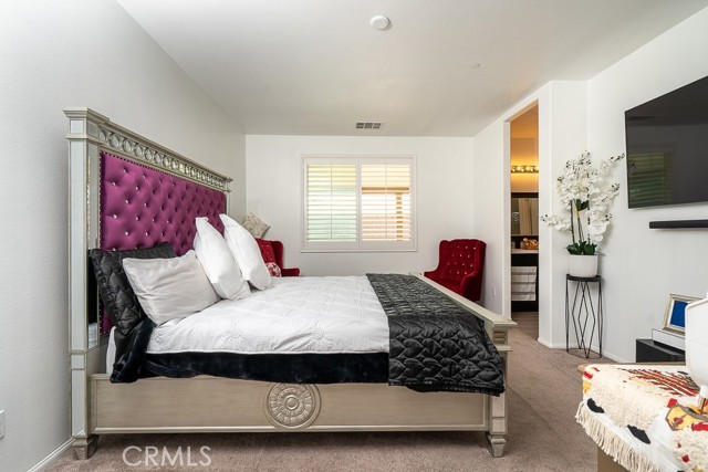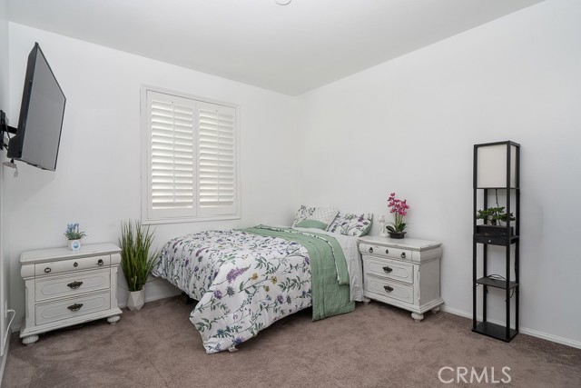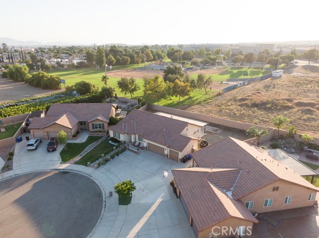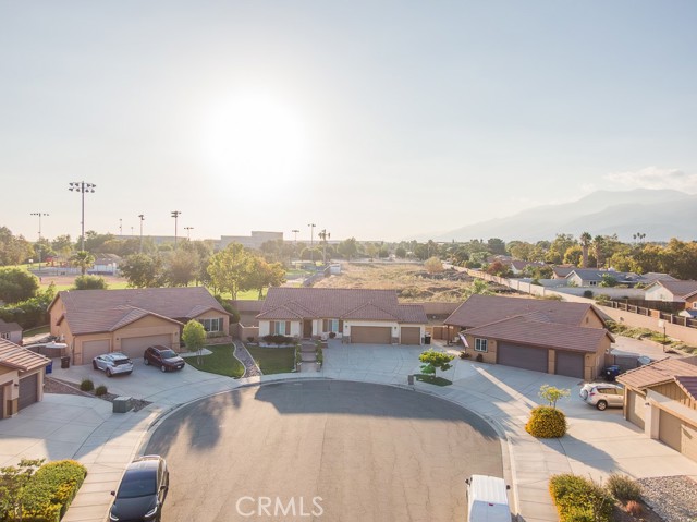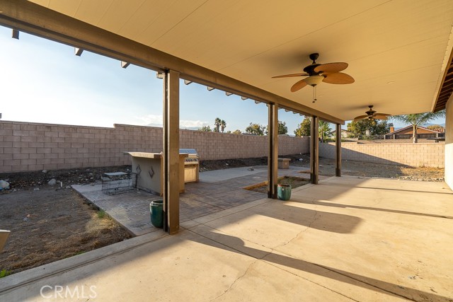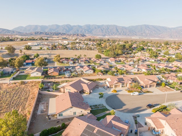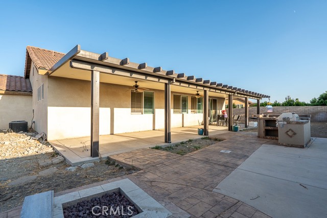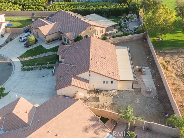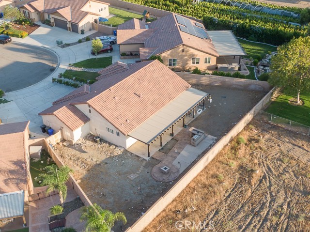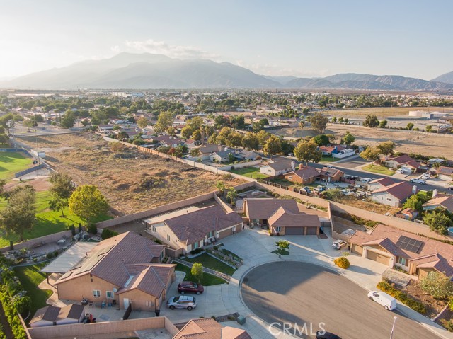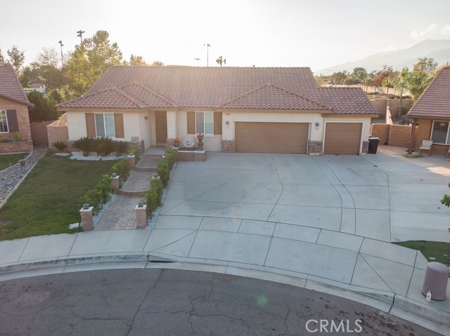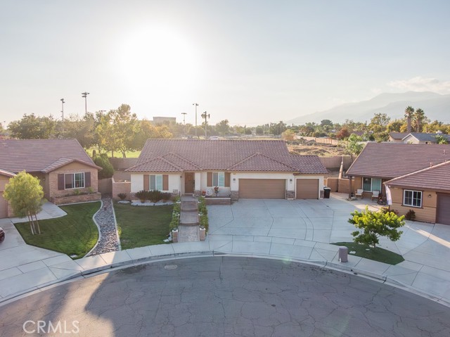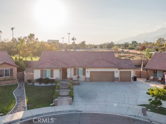 Welcome to this beautiful single-story home featuring four bedrooms and three bathrooms. Located in a quiet cul-de-sac, this property offers great curb appeal with inviting steps leading to the front entry and a spacious three-car garage. Inside, you'll find two main bedrooms, each with its own bathroom and walk-in closet, providing ample comfort and privacy. The remaining two bedrooms are connected by a shared Jack-and-Jill bathroom for added convenience. Modern touches such as recessed lighting, crown moulding, and shutters throughout add style and elegance to the space. The backyard is designed with entertainment in mind, featuring a covered patio, built-in barbecue island, outdoor fireplace, and a gas-lined bonfire — perfect for hosting friends and family. Sitting on a large lot, the yard offers a partially landscaped layout, leaving a generous open canvas for the new homeowners to create the backyard of their dreams, with ample space for a pool, jacuzzi, garden, or more. With no HOA, you'll enjoy added freedom and flexibility. Conveniently located just minutes from the 210 freeway for easy commuting, and close to shopping and dining at the Renaissance Marketplace. Don't miss out on this incredible home — schedule a showing today and make it your dream home!