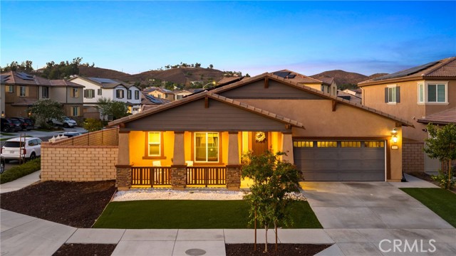 Welcome to 24440 Reserve Ct! Modern comfort meets effortless living! Located in the highly desirable Audie Murphy Ranch community, this beautifully upgraded single-story home offers 4 spacious bedrooms, 3 full bathrooms, and over 2,400 sq ft of open-concept living space. Built in 2020, this home has been thoughtfully designed for both everyday living and stylish entertaining. Step inside to discover luxury vinyl plank flooring, high ceilings, and an abundance of natural light. The chef's kitchen features granite countertops, a large center island with bar seating, stainless steel appliances, a walk-in pantry, and plenty of cabinet storage. The private primary suite is tucked away from the secondary bedrooms and includes a large walk-in closet, dual sinks, a soaking tub, and a separate glass-enclosed shower. Secondary bedrooms are well-sized, with one offering en-suite access. Additional highlights include: whole house water softener system and spacious laundry room. Outside, enjoy low-maintenance landscaping, artificial turf, and a spacious backyard ready for your personal touches. All of this in a resort-style community offering pools, spas, walking trails, parks, sports courts, and top-rated schools nearby. With easy access to shopping, dining, and the 215/15 freeways, this home checks every box!