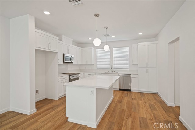 Welcome to your move-in ready townhome in the gated Azul community by KB Home, centrally located in the heart of Pico Rivera. This thoughtfully designed Plan 1560 residence offers 1,560 sq. ft. of modern living across three levels, featuring stylish upgrades, quality finishes, and a layout built for comfort and convenience. The main level showcases a bright, open-concept design with a spacious kitchen at its center. Enjoy quartz countertops, white Shaker-style cabinetry, chrome hardware, and Samsung stainless steel appliances — including a smart induction range and Energy Star® dishwasher. A large center island adds prep space and seating, seamlessly connecting to the great room — perfect for entertaining or unwinding. Upstairs, the private primary suite offers a walk-in closet and spa-inspired bath with dual sinks, quartz counters, and a glass-enclosed shower. Two additional bedrooms with mirrored wardrobes share a full bathroom, while a convenient powder room is located on the main level for guests. Throughout the home, durable vinyl plank flooring brings warmth and easy maintenance — even extending into the bedrooms and staircases. Additional highlights include an ecobee3 Lite smart thermostat, Energy Star® lighting, upstairs laundry with 220V outlet, and prewiring for flat-panel TVs in the great room. Enjoy easy access to nearby outdoor escapes like Whittier Narrows, Turnbull Canyon, and Arroyo Pescadero Trailhead. With Hwy. 164, Hwy. 60, I-605, and I-5 just minutes away — and downtown LA only 30 minutes — shopping, dining, and local favorites such as Alchemy Craft and Brewjeria Company are always close at han.
