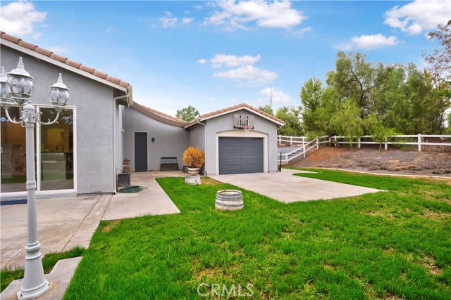 Welcome to this amazing Gavilan Hills estate that perfectly blends style and livability! It's a great fit for all kinds of lifestyles. Inside, you'll find cozy spaces designed for comfort and connection, thanks to an open layout that's perfect for family hangouts and get-togethers. The kitchen is a chef's dream, loaded with high-end appliances and granite countertops, plus a big pantry for all your cooking essentials. The living room flows right into the dining area, creating a warm vibe for entertaining. The primary suite is like your own private retreat, spacious and serene, making it a great spot to unwind. There's a large custom primary wardrobe closet to make your daily routine a little easier. The Jack and Jill bedrooms are perfect for families or guests, giving everyone their own space while still keeping that sense of togetherness. Step outside to the spacious backyard, a real highlight of the property! The Swim Pro hot tub is just waiting for you to kick back after a long day, and the half-court basketball setup is all about fun and staying active. Plus, with over 20 fruit and nut trees scattered throughout the yard, you'll get to enjoy fresh produce right from your own home. The full irrigation system, powered by well water, makes it super easy to keep everything lush and green without the hassle. And let's not forget about the solar system with 72 panels, which not only boosts energy efficiency but also helps save on those utility bills — talk about a win-win! For safety, the estate has modern security features like an automated coded gate and two in home safes, giving you peace of mind. If you work from home or just need a quiet spot to focus, there's a dedicated home office space that's perfect for getting things done. Plus, the outdoor tool shed is great for storing all your gardening gear or sports equipment. And let's talk views! The estate boasts breathtaking mountain scenery, with stunning sunrises and sunsets that you can enjoy right from your backyard. The lack of light pollution means the night sky is perfect for stargazing — imagine unwinding under the stars after a long day. This home isn't just a place to live; it's a sanctuary where luxury meets comfort and nature, offering a one-of-a-kind living experience. Whether you're looking to relax, entertain, or enjoy the great outdoors, this estate has it all!