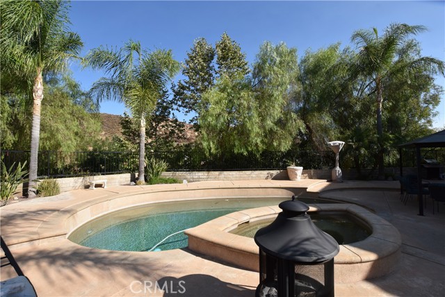 Beautiful 4-Bed, 3-Bath Home with Pool, RV Parking! Welcome to this stunning single-family home, tucked away on a private flag lot with RV parking — and best of all, NO HOA and NO MELLO ROOS! Step through elegant Spanish-style double doors into a bright and open living space featuring soaring ceilings, a wraparound staircase, and new laminate flooring throughout the main level. The kitchen has been upgraded with new tile floors, a center island, and flows seamlessly into the dining and family rooms — perfect for entertaining. Enjoy sunny California days in your beautiful wraparound backyard, complete with a PebbleTec high-efficiency saltwater pool — your own private oasis. The main floor also includes a formal living and dining room, one bedroom and full bath (perfect for guests or multi-gen living), plus a laundry room for convenience. Upstairs, retreat to your spacious master suite featuring breathtaking views, a dual-sided fireplace, jacuzzi tub, separate shower, dual vanities, a private water closet, and a large walk-in closet. Two additional upstairs bedrooms share a completely remodeled Jack & Jill bathroom. This home also features a leased solar system (15.36 kW) to help save on energy costs year-round. Seller is motivated, So don't miss this rare opportunity to own a truly special property with space, style, and privacy — schedule your tour today!