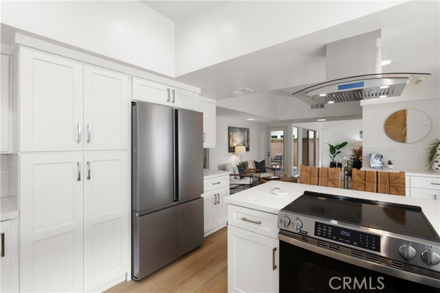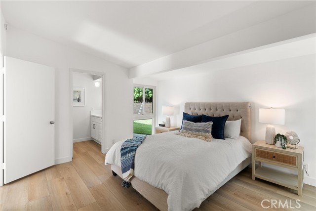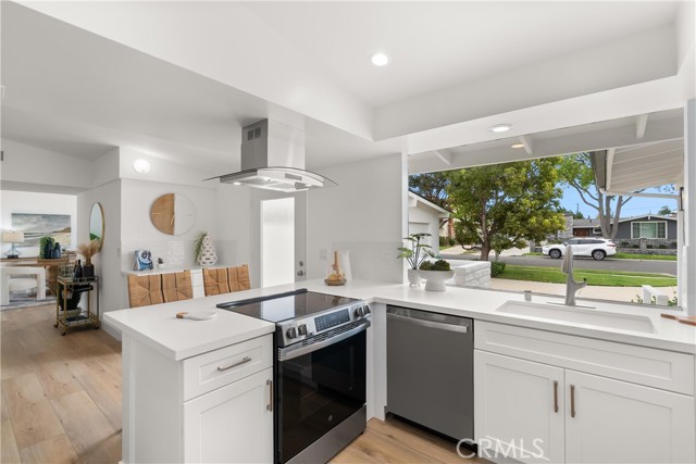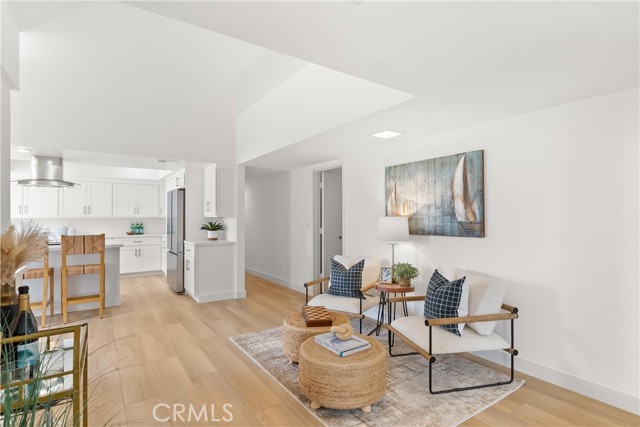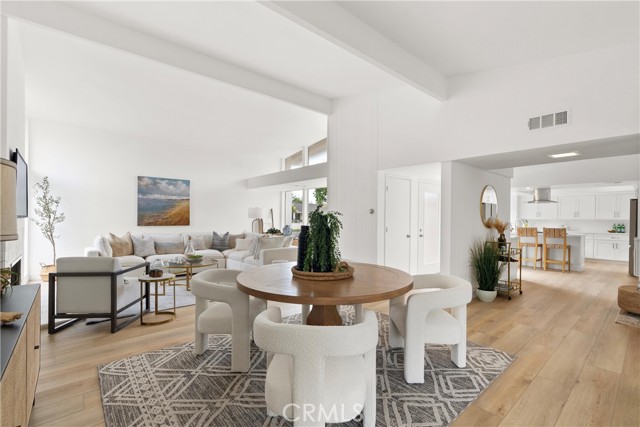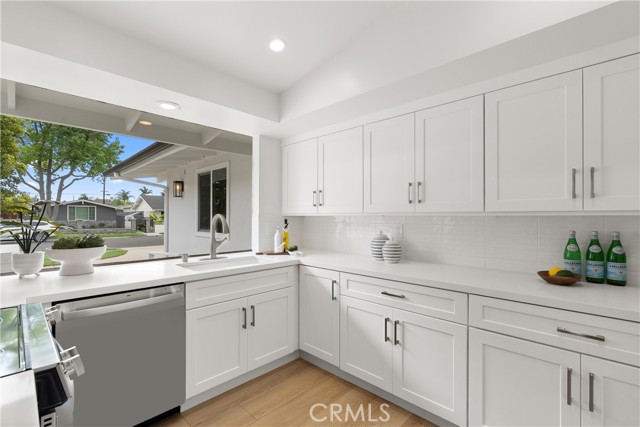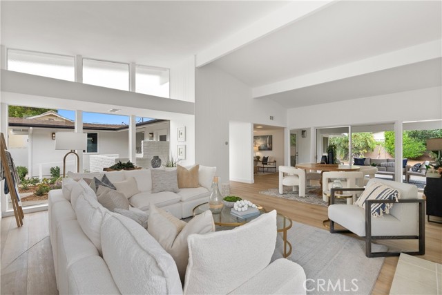 The possibilities for tomorrow are usually beyond our expectations. Welcome to the prestigious Rossmoor enclave, where refinement, good manners, & friendly neighbors make every day a reason to smile. The pace of daily life is in slow motion as neighbors wave hello, kids ride bikes, & folks jog by getting their fitness on. This neighborhood is for those seeking a throwback to the tranquility & comfort of days gone by. The curb appeal of this beautifully remodeled, single level home is enhanced by dual pane windows, new white paint, & a lush, manicured lawn. Now step inside. Natural light cascades through the floor to ceiling windows illuminating the charm & beauty within. A life well lived is born of good music, literature, art & entertainment. The flow of this expansive floor plan, & the size of these rooms, is an invitation to explore the essence of what it means to live well. The heart of the home is the kitchen & this newly upgraded masterpiece will delight the family chef. New white shaker cabinets, smooth quartz countertops, & stainless steel appliances create a space where stories are told, cookies are baked, & kids linger for morning hugs. Adding to the charm, beauty & panache' are new luxury vinyl flooring, two upgraded bathrooms with new vanities & quartz countertops. Fresh, interior & exterior paint, an interior utility room, & a 2 car garage. The warm glow of a cozy fire in the living room fireplace makes for good movie nights & romantic encounters. Walls of sliding glass blur the lines between indoor & outdoor living & offer an invitation to step outside to relax & rejuvenate. Whether you seek solitude with a good book or a celebration of life's blessings with friends & family, this multi-functional yard delivers. When day is done & moonlight fills the nighttime sky, lift a glass, flip burgers, dine al fresco under the expansive, covered patio, play games & share stories. This residence is served by the coveted Los Alamitos school district, renowned for its educational excellence, providing a top-tier learning environment for growing families. Nearby, Little Cottonwood Park offers a year-round fun fest for adults & kids alike with play-center, sand volleyball & basketball courts, picnic shelters, & BBQ's. Experience the epitome of the SoCal lifestyle where comfort, convenience & natural beauty converge in perfect harmony in the desirable Rossmoor enclave. Life is what you make it & yours just got exceedingly better. Welcome home.