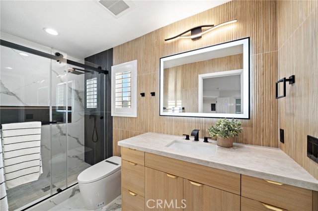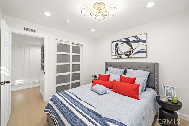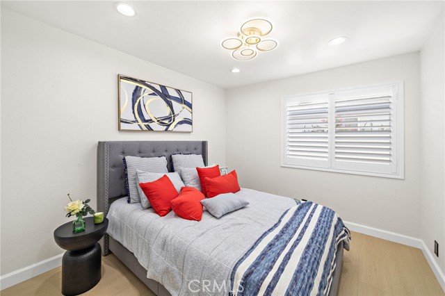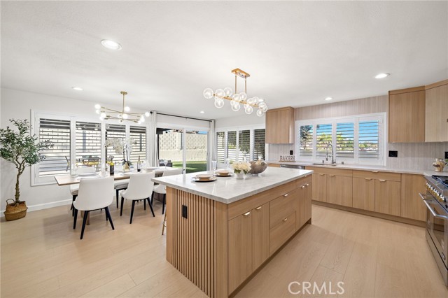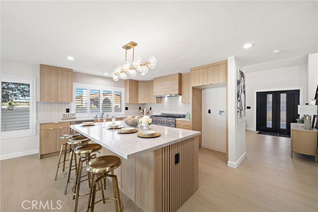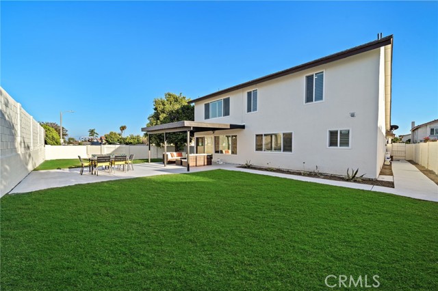 Every square inch of this stunning home has been completely reimagined with impeccable attention to detail and the finest modern luxury finishes, with the remodel just completed in July 2025! This show-stopping 4 bedroom home (including 2 primary suites — 1 downstairs), plus loft/family room, and 3 beautifully remodeled baths feels like a brand-new model home and is ideally situated on an extra-large 11,232 SF corner lot. The open-concept design boasts soaring ceilings, dual pane windows, plantation shutters, recessed lighting, exquisite chandeliers, decorative geometric wall moldings, chic floating shelving, raised panel doors, and waterproof luxury wood-vinyl flooring. The chef's dream kitchen is a masterpiece with Corian counters, a large island with seating, Euro-style self-closing cabinetry, and professional-grade stainless appliances, including a 48" 6-burner NXR double oven gas range. Gorgeous curb appeal features manicured tropical landscaping and a tiled courtyard that leads to double entry doors with frosted glass. Inside, the breathtaking living room showcases an artful electric fireplace and a dramatic staircase with sleek steel railing, seamlessly flowing to the gourmet kitchen and banquet-size dining room with walls of glass overlooking the expansive backyard oasis with covered patio, park-like lawn, and high block wall fencing for privacy — perfect for entertaining or future pool/ADU. All 3 bathrooms feature textured tile surrounds, LED light mirrors, Corian vanities, clear glass barn-door enclosures, and smart heated toilets. Spacious bedrooms include frosted glass closet doors; the upstairs primary has a retreat and walk-in closet, while the downstairs primary offers dual closets. Additional highlights include direct access to the finished garage and multiple opportunities for multigenerational living or expansion on the oversized lot. Ideally located near Little Saigon Center, Bella Terra, Huntington Beach, Fountain Valley, parks, schools, and freeways, with just a short drive to the beach, this home offers the perfect blend of luxury, space, and coastal convenience.