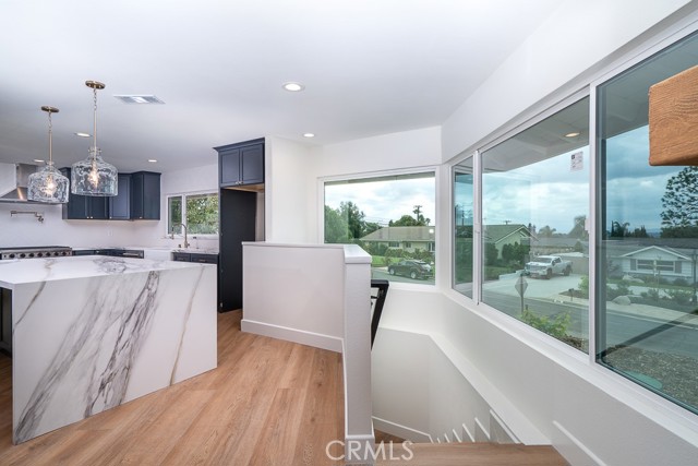 This unique La Verne property offer panaromic views, a complete remodel, and fully landscaped corner lot with an abundance of fruit trees and small vineyard. A very functional floor plan offers an impressive great room with massive fireplace including hearth and mantle, huge picture windows and sliding glass doors, chef's kitchen with massive island, 4 bedrooms (2 with ensuite bathrooms), indoor laundry room on main floor, 3 bathrooms and finished basement with storage. Updates and upgrades include: 200 amp panel, new electrical wiring, switches/plugs, recessed lighting, lighting fixtures, plumbing fixtures, new plumbing supply lines, tankless water heater, new roofing underlayment, new insulation, new HVAC system w/ducting, tiled showers, all new counters and cabinets, microwave drawer, 36 inch range/oven, laminate and tile flooring, paint, dual paned windows, interior and exterior doors, sprinkler system, landscape, new concrete patios in front and back with new entry steps, iron raiings, covered patio with tile, new concrete driveway, new garage doors with openers, epoxy flooring in garage plus 220V available for EV charging. Info deem reliable, buyer to verify.