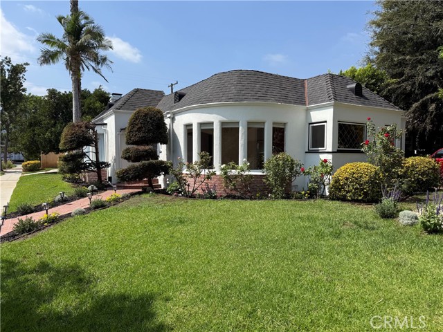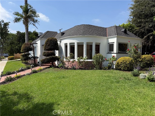 Set in the highly desired Glendale Rancho neighborhood, this beautifully updated French Normandy-style single-family home offers 3 bedrooms and 2 bathrooms. Every detail has been thoughtfully considered, with fresh paint inside and out showcasing the home's character and charm. Step through the formal entry and into an expansive living room, featuring a large bay window, soaring custom ceilings, built-in bookcases, a fireplace, and modern LED lighting throughout. The elegant dining room boasts sweeping curved windows with views of the professionally landscaped front yard, creating a perfect space for entertaining. The open-concept layout flows seamlessly into a stylish kitchen equipped with maple wood cabinetry, granite countertops, a breakfast bar, and brand-new stainless steel appliances. Adjacent to the kitchen is a laundry room with a convenient rear access door. Down the main hallway are three spacious bedrooms. Two are en-suite with direct access to bathrooms, while the third bedroom — ideal as a guest room or home office — features wood paneling and a dedicated door for added privacy. The third bedroom opens directly to the private backyard. Outside, the freshly landscaped yard creates a peaceful retreat, perfect for relaxing or hosting friends. The detached two-car garage, finished with drywall and polished concrete floors, offers a versatile space that's ideal for a home office, studio, or creative getaway.