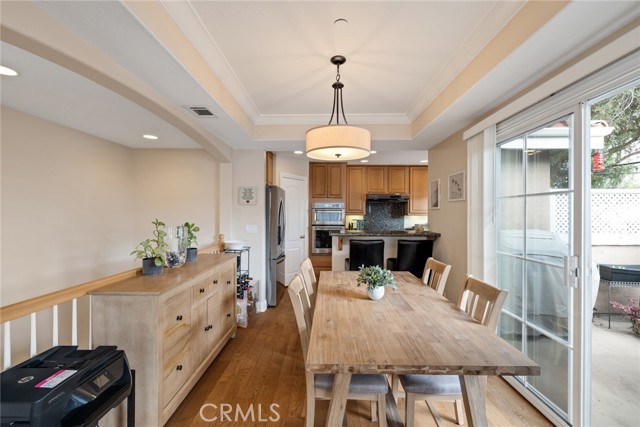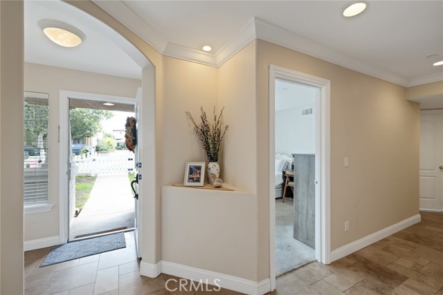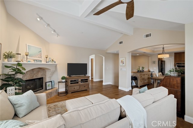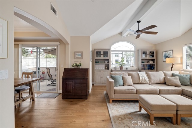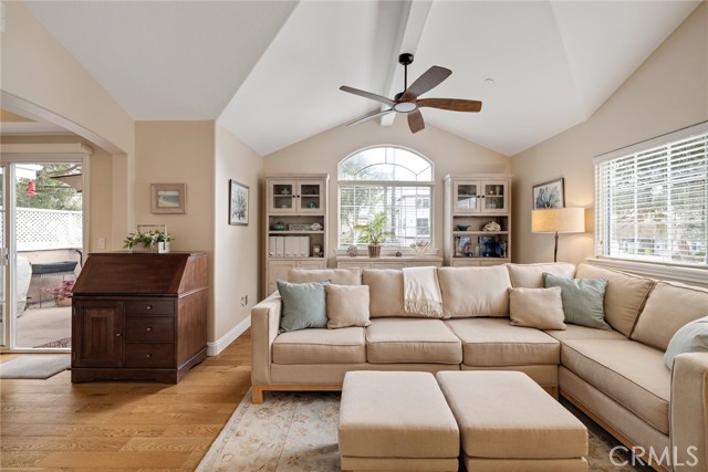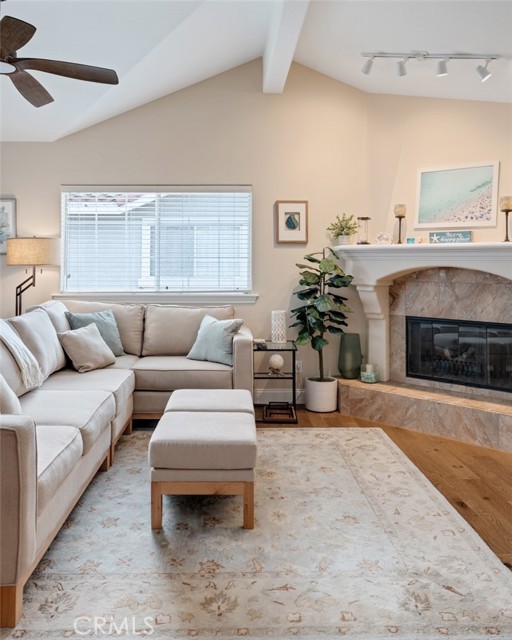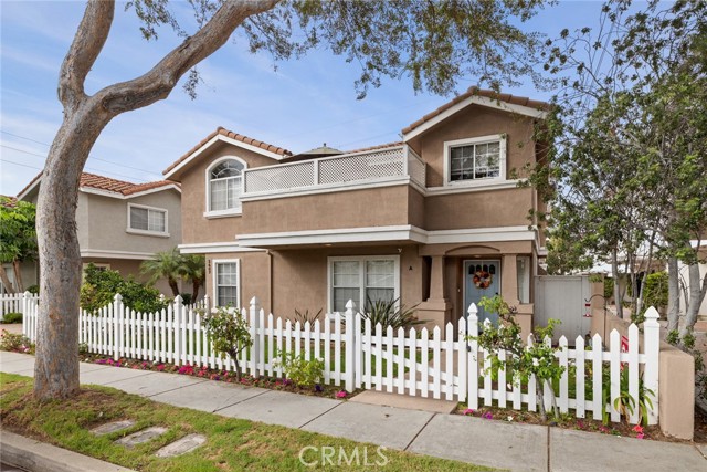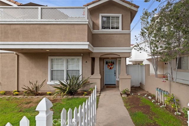 An enclosed front yard with a white picket fence, colorful roses, and even a sweet Cara Cara orange tree sets the stage for this sunny south-facing front-unit townhome. This welcoming outdoor space is perfect for morning coffee, tending your garden, or simply enjoying the neighborhood charm. Step inside through the formal stone-tiled entry and discover a spacious, flexible floorplan designed for both comfort and convenience. Two bedrooms and a full bathroom are located downstairs, ideal for guests, extended family, or a quiet home office. Upstairs, the main living areas open up dramatically with soaring ceilings, a light stone fireplace focal point, and expansive windows that invite in natural sunlight throughout the day. The heart of the home is the generous living room, seamlessly connected to the dining area and kitchen by newer wide-plank oak hardwood flooring. Entertain with ease here, whether hosting the holidays in the dining room, enjoying casual meals at the breakfast bar, or stepping out to one of two balconies for fresh air and relaxation. The open flow makes it a breeze to gather with loved ones, while the kitchen is thoughtfully equipped with stainless steel appliances, granite counters and backsplash, light wood cabinetry, and a pantry for convenient storage. A convenient half bath off the hall serves the living and entertaining areas, ensuring ease for both residents and visitors. Beyond, your spacious primary suite awaits, complete with a vaulted ceiling, walk-in closet, and a spa-style bathroom featuring dual sinks, a jetted tub, a separate shower, and a private water closet. Adjacent to the primary suite is a rare 4th bedroom upstairs perfect for a nursery, home office, or cozy den, adding valuable flexibility. Downstairs, two additional bedrooms share a full bathroom and are located near the in-home laundry, making everyday routines seamless. Additional highlights include storage under the stairs, central air conditioning, multiple ceiling fans, and a two-car attached garage with direct access and even more storage space. This intimate three-unit community is well maintained and recently refreshed with exterior paint for a crisp sense of arrival. Ideally located near top-rated schools, parks, shops, restaurants, the beach, and freeway access. This residence offers the perfect mix of coastal lifestyle, daily convenience, and the benefit of four bedrooms, all at an exceptional value in the heart of the South Bay, ready to welcome you home.
