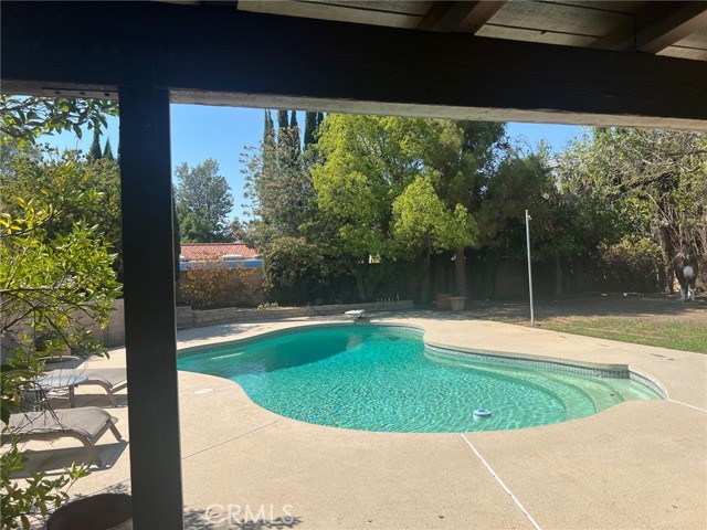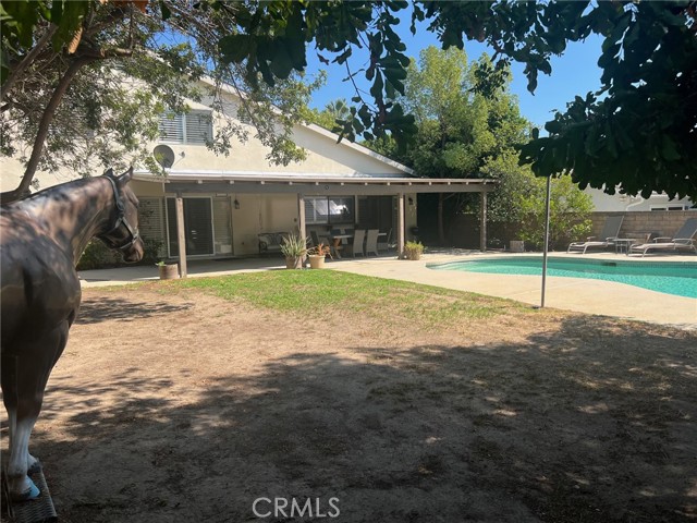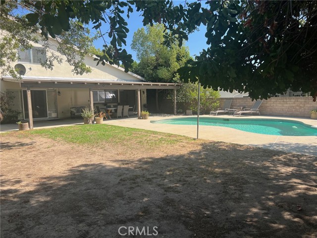 Welcome to this 4 bedroom, 3 bath, nearly 2300 sq. ft. home nestled in one of Chatsworth most sought after neighborhoods. The spacious living room boasts high celling, bay window, and cozy fireplace with a custom mantel and stone hearth. The step down dining room has a bay window and wood type flooring. Light filled, tiled kitchen with a convenient breakfast area, newer Samsung appliances (microwave, stove, and dishwasher), large pantry and beautiful plantation shutters. The cozy family room offers wood type flooring, beamed ceiling, built-in desk area, wet bar, and floor to ceiling plantation shutters. The main level offers a full bedroom and bath, perfect for guests or home office. Upstairs the oversized primary suite offers a private balcony - perfect for your morning coffee, a large walk in closet, plus a secondary closet. Additional highlights include a two-car direct access attached garage. Newer central heat/air and newer roof. The expansive backyard is ready for entertaining with a covered Patio and sparkling pool. The desirable Chatsworth location has it all. Close proximity to the Vineyards shopping center, which offers a wonderful choice of restaurants, Whole Foods market, and a movie theater. With nearby hiking trails, great schools, parks and easy freeway access, this one is not to be missed!