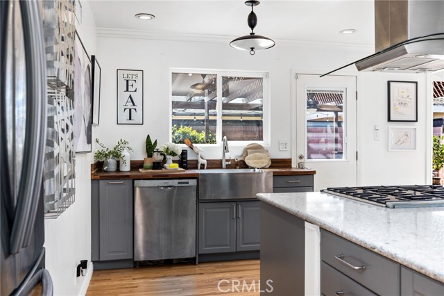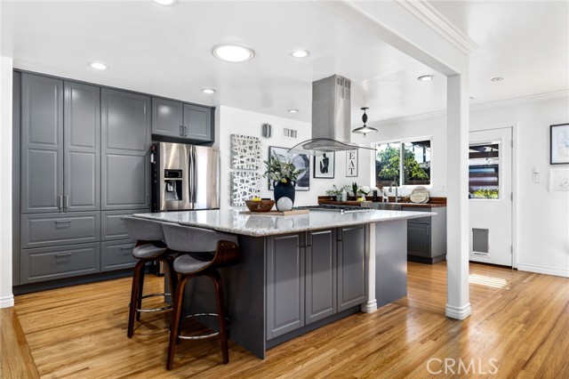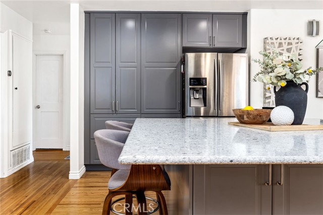 This beautifully upgraded 3-bedroom, 2-bathroom single-level home is ideally situated in the North Gateway neighborhood of Gardena — a location known for its unbeatable convenience and proximity to everything Southern California has to offer. Whether you're commuting to Downtown Los Angeles, heading west to Redondo or Manhattan Beach (just 8 miles away), or hopping on one of the many nearby freeways, this home puts you right in the heart of it all. From the moment you arrive, you'll notice fresh exterior paint, a roof under 10 years old, and drought-tolerant landscaping creating eye-catching curb appeal with low-maintenance benefits. Inside, the home has been thoughtfully redesigned to open up the living space — walls removed to create a seamless flow between the kitchen, dining, and living areas. complete with real white oak flooring, honoring the home's vintage 1950s character, and now enhanced with modern recessed lighting and a striking black marble fireplace — a true focal point that brings warmth and sophistication. The remodeled chef's kitchen is a standout feature, showcasing a large granite island, soft-close cabinetry, a charming farmhouse sink, and upgraded appliances that make cooking and entertaining a joy. All three bedrooms offer generous space and comfort. One secondary bedroom includes a closet organizer, while the primary suite is outfitted with a custom-built closet system and an elegantly upgraded ensuite bathroom. The second bathroom has also been tastefully updated with frameless glass shower, new vanity, and features a soaking tub — a perfect place to relax after a long day.. From the living room, Slide open the upgraded 3-panel accordion glass door and step into your private backyard oasis. A freshly stained redwood deck, fruit-bearing trees, and plenty of space to entertain or unwind create the ideal outdoor living environment. Enjoy year-round comfort with a newer HVAC system (2017), an upgraded electrical panel (2024), and dual-pane windows throughout. For lifestyle lovers, the home is located just 2 miles from The Enclave, a vibrant hub offering curated restaurants, outdoor entertainment spaces, art installations, and regular community events. This home checks all the boxes: style, smart updates, comfort, and a location that puts you minutes from the beach, the city, and everything in between.