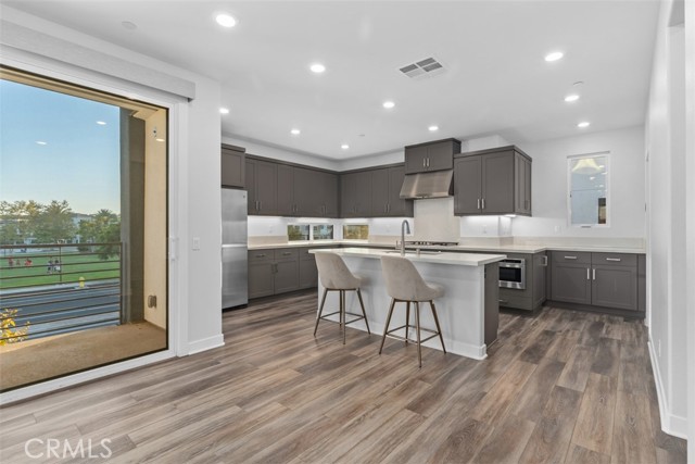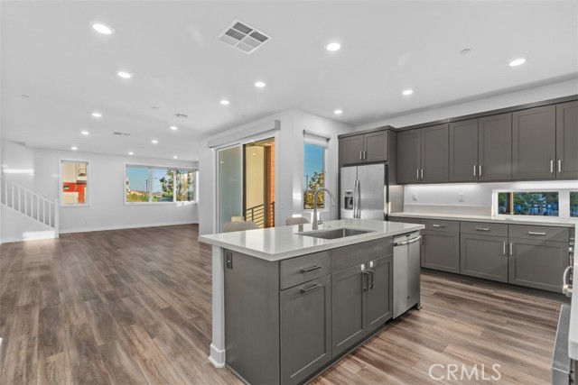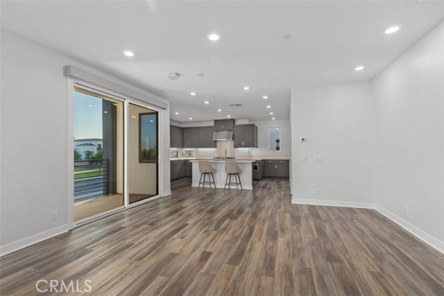 MODERN LUXURY WITH PANORAMIC VIEWS — Welcome to this beautifully designed corner home in the heart of Tustin Legacy, offering over 2,200 SQFT of open living space and some of the best park and mountain views in the community. With only one shared wall and abundant natural light throughout, this residence feels both private and spacious. The versatile floor plan includes 4 bedrooms and 3.5 baths, highlighted by a first-floor bedroom with an en-suite bath — ideal for guests, in-laws, or a dedicated home office. The main level features an expansive great room with soaring windows and a chef's kitchen complete with quartz countertops, stainless-steel smart appliances, a large center island, and a covered balcony perfectly framing the park and hangar views. Upstairs, the primary suite is a true retreat with oversized windows capturing sweeping vistas, plus a spa-inspired bath and generous walk-in closet. Two additional bedrooms complete the top floor, each designed with comfort and style. Located in the desirable Levity Community, residents enjoy access to resort-style amenities including a sparkling pool, spa, and BBQ area. Just steps from Victory Park, The District at Tustin, top-rated schools, and minutes from freeways, this home blends luxury living with everyday convenience.