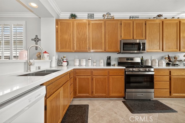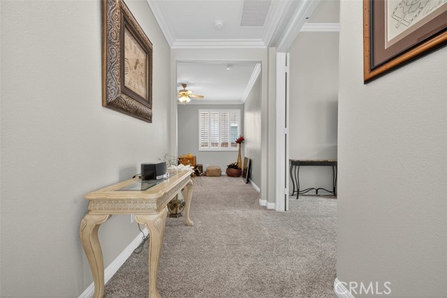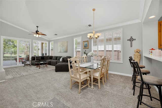 Rancho Belago **** PLEASE see Virtual Tour*** Well-regarded 55+ community! Escape the congestion and noise. Enjoy the peace of this gated Moreno Valley community with 265 thoughtfully single-family homes. Perfect for downsizing and retirement. The fully upgraded home features beautiful earth-tone interiors, many upgrades, including new carpet, an upgraded kitchen, and bathrooms. Spacious hallways and bathrooms provide easy maneuverability, accommodating mobile needs if needed. Fully landscaped front and back yards are low-maintenance with a serene golf course view. Enjoy the pleasure of walking your four-legged friend in a secure, welcoming community with peaceful surroundings. Residents enjoy a host of amenities: swimming pool, jacuzzi, clubhouse, workout room, tennis courts, and pickleball. With ongoing monthly activities, this community combines comfort, security, and an active lifestyle. A true place to call home. Thank you for showing!.