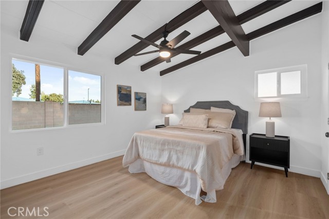 MID-CENTURY MODERN | FULLY REMODELED | CORNER LOT WITH POOL Welcome to 2075 E Benwood St — a stunning mid-century modern home that has been completely reimagined with today's lifestyle in mind. Step inside to an open-concept living space with soaring ceilings, exposed beams, and brand-new drywall that make the home feel bright, airy, and inviting. The layout flows seamlessly into a designer kitchen with all-new cabinetry, countertops, and appliances — perfect for everyday living and entertaining. Upgrades completed with permits include: ALL NEW fully rewired electrical with 200 AMP panel, New central AC & furnace with Slim unit, New dual-pane windows, New interior and exterior doors, New luxury vinyl plank flooring, New ceiling fans, fully remodeled bathrooms, fresh paint inside and out, and new baseboards. The backyard is your private retreat with a re-plastered pool featuring a new waterfall and new tile, a cozy fire pit area, fresh landscaping with mature Orange, Lemon, and Pomegranate trees, and plenty of space to relax or host gatherings. Sitting on a corner lot, the property also offers potential for RV parking, garage expansion, or an ADU. Enjoy the convenience of being walking distance to Glen Oak Elementary, Life Pacific University, San Dimas Community Hospital, Costco, Sam's Club, and Bonelli Park, with commuters appreciating quick access to the 210, 57, and 10 Freeways as well as the Covina Metrolink station. This is a rare opportunity to own a stylish mid-century modern home that blends timeless design with modern comfort — COME, SEE THIS HOME BEFORE IT'S TOO LATE!
